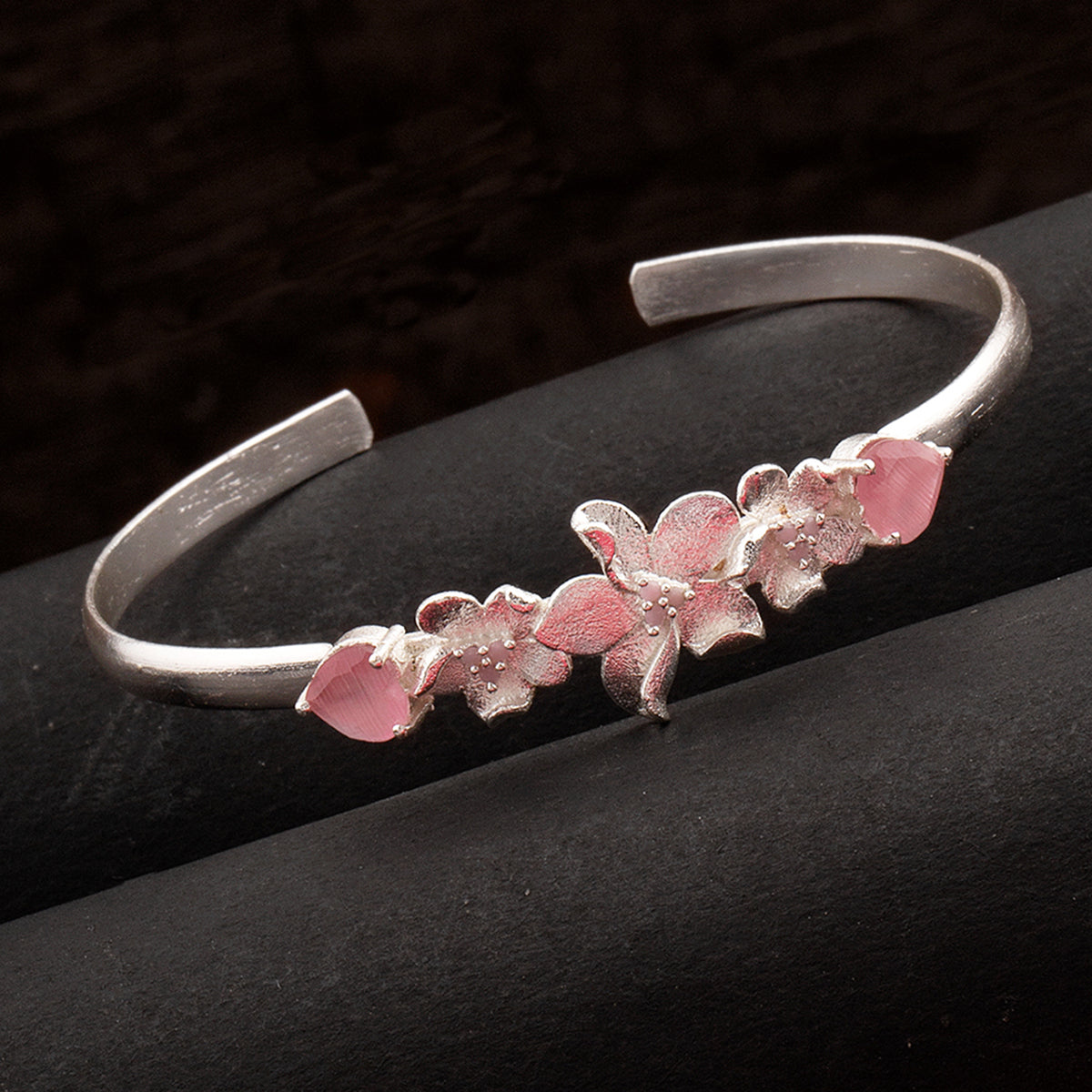 When it comes to bracelets, you can never go wrong with floral style. This chic bracelet is guaranteed to make you smile every time you catch a glimpse of it. Plated with silver and dressed up with baby pink gemstone. It goes well with your formal dress.
