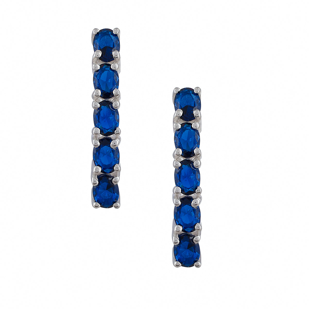 Sophisticate yourself with these brightly polished stylish sterling silver hoop earrings studded with treated blue stone. Their stunning design enhances the beauty and charm of these magnificent earrings.
