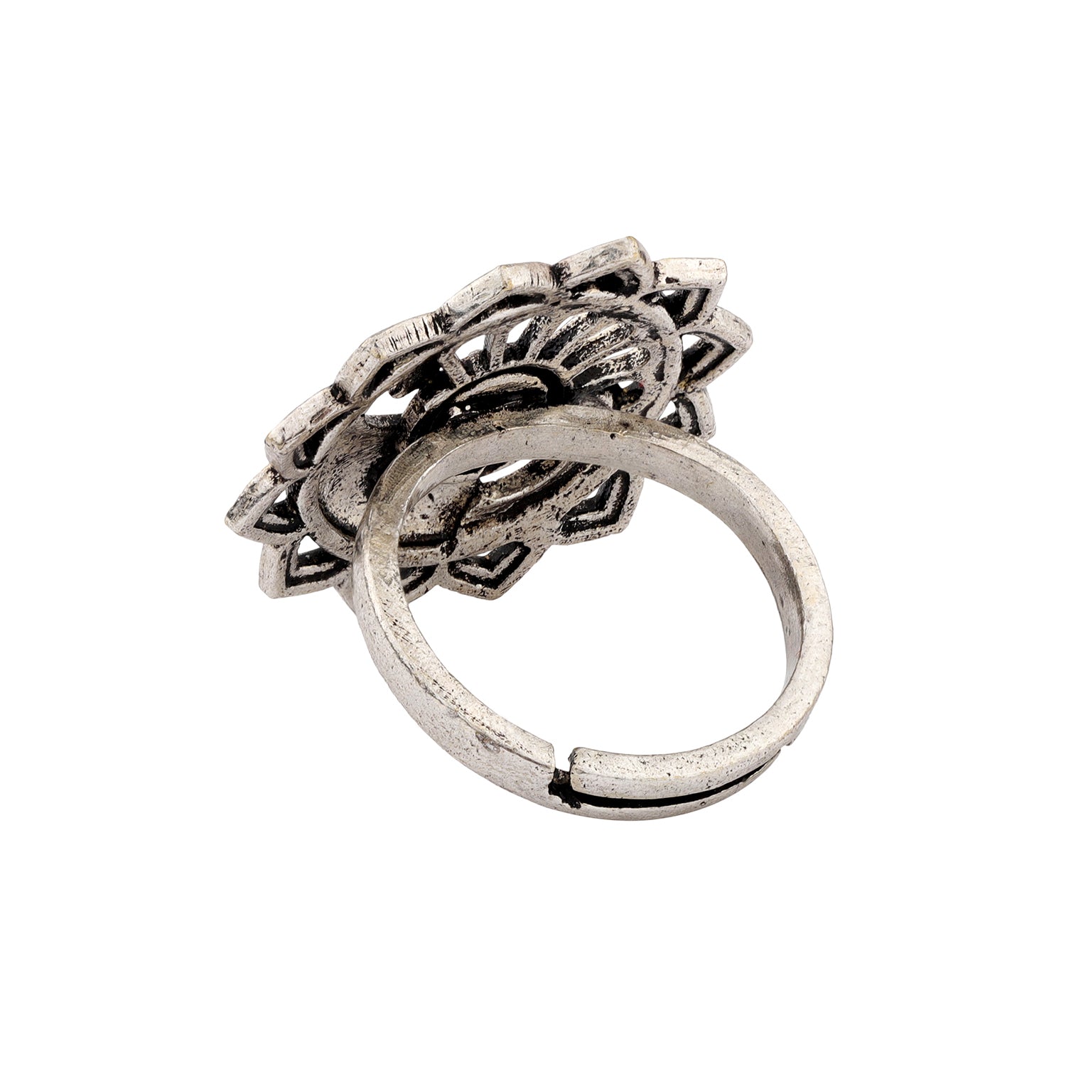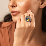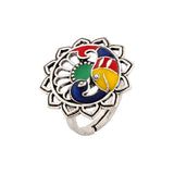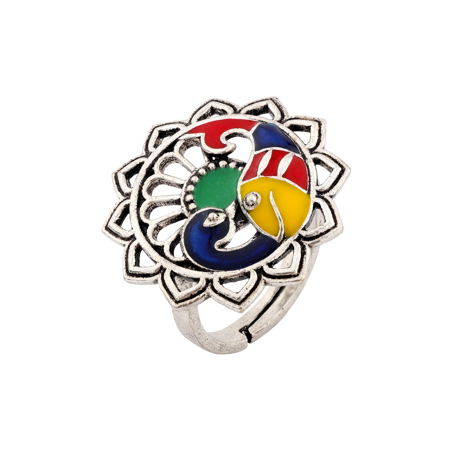 Madhubani Matsya Mayur Oxidised Enamel Ring