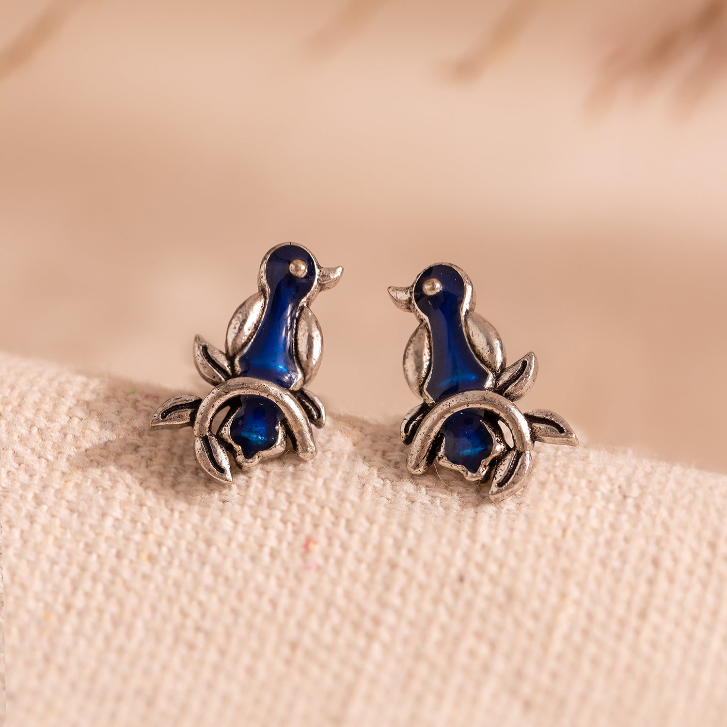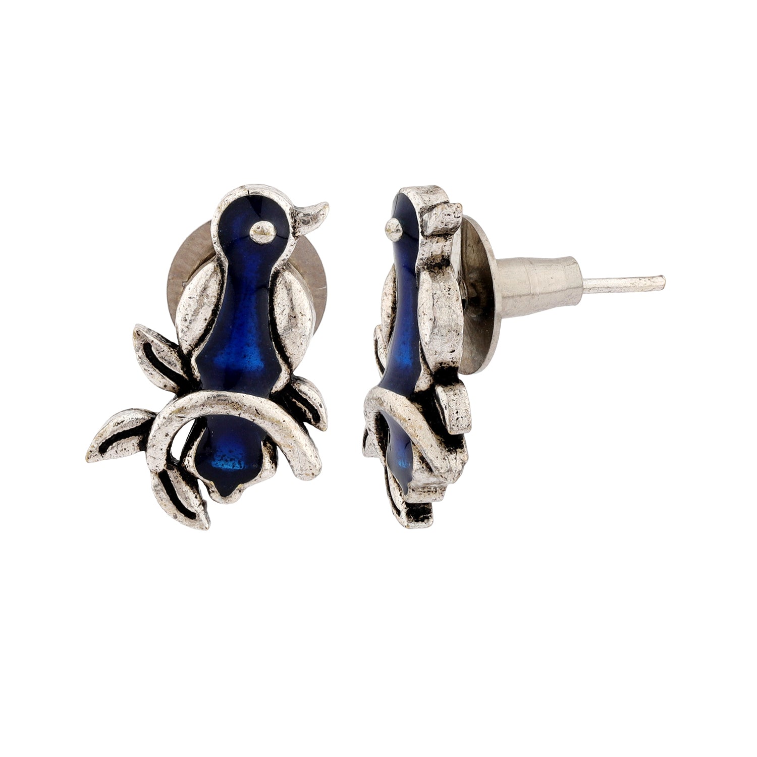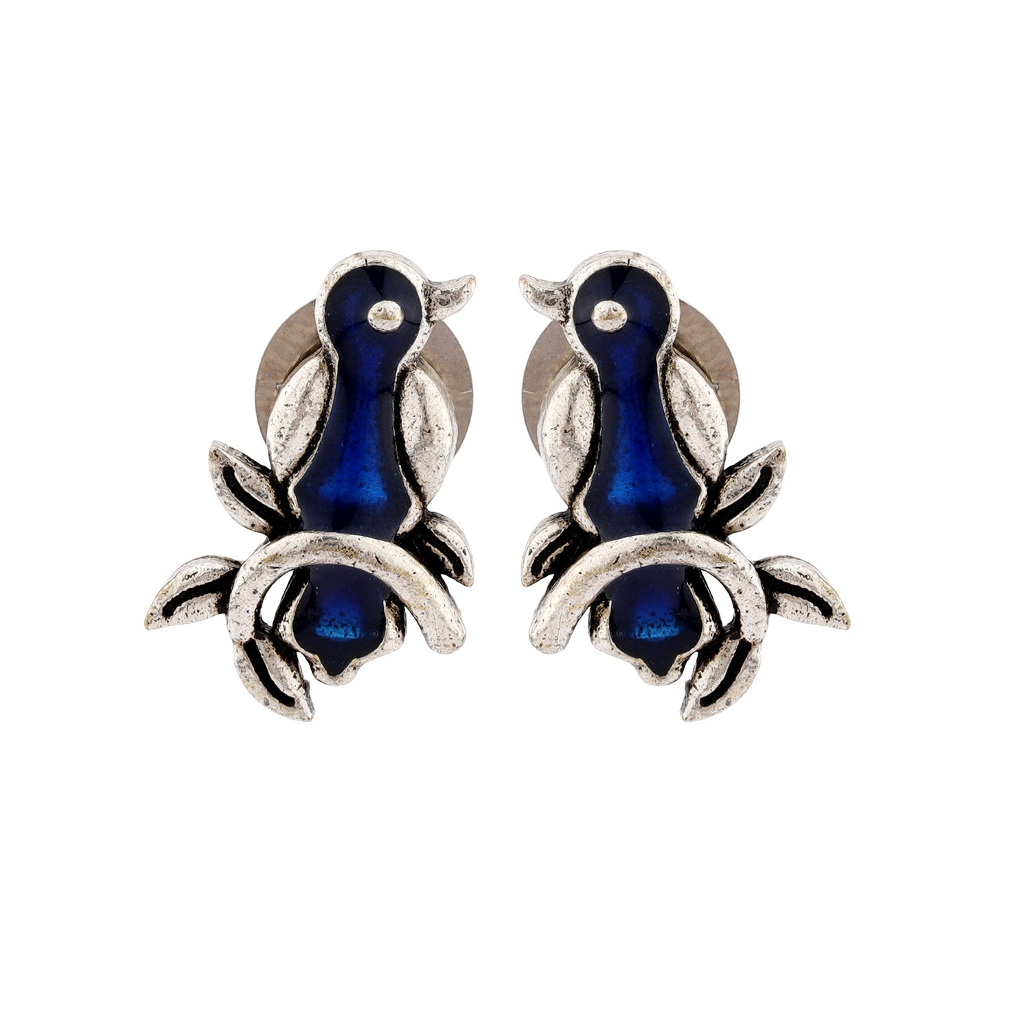 Madhubani Pakhi Oxidised Enamel Earrings