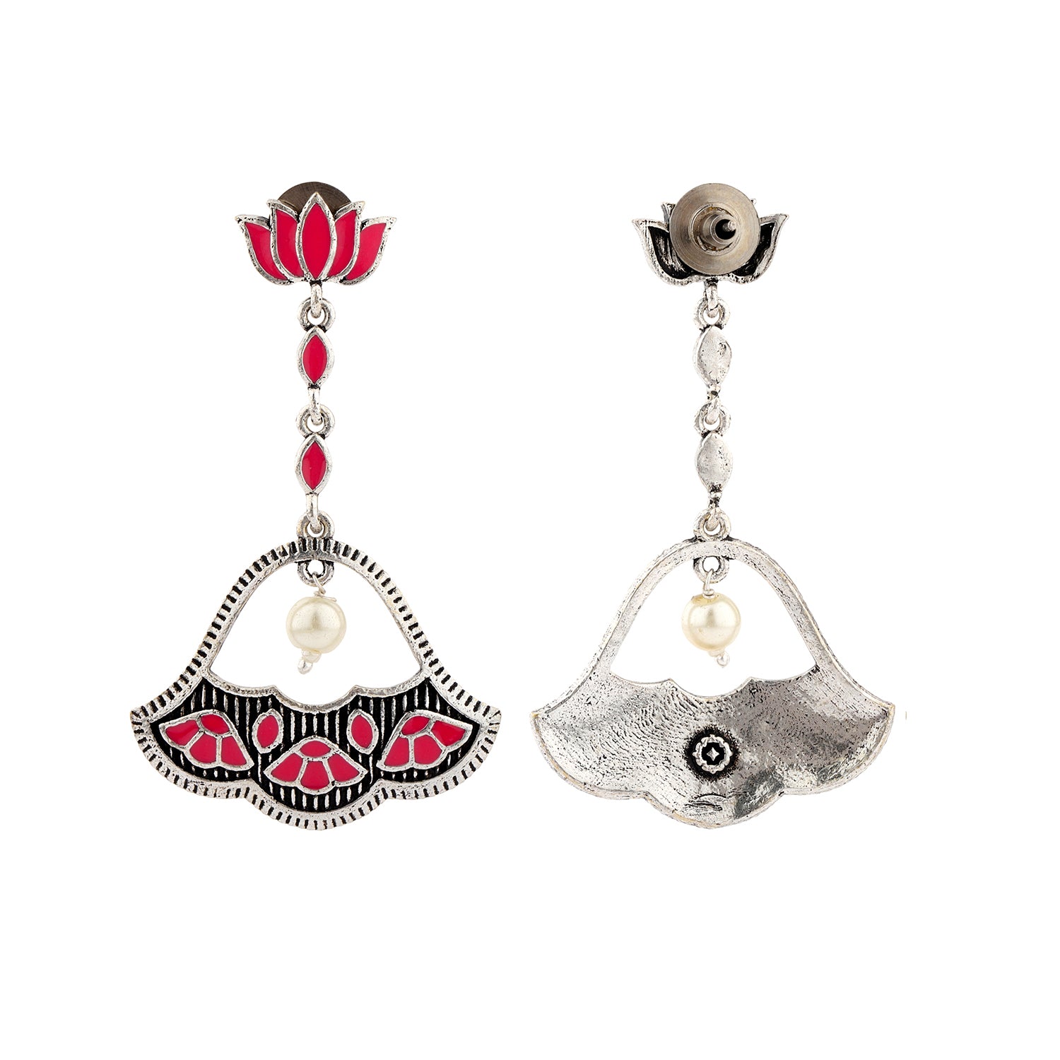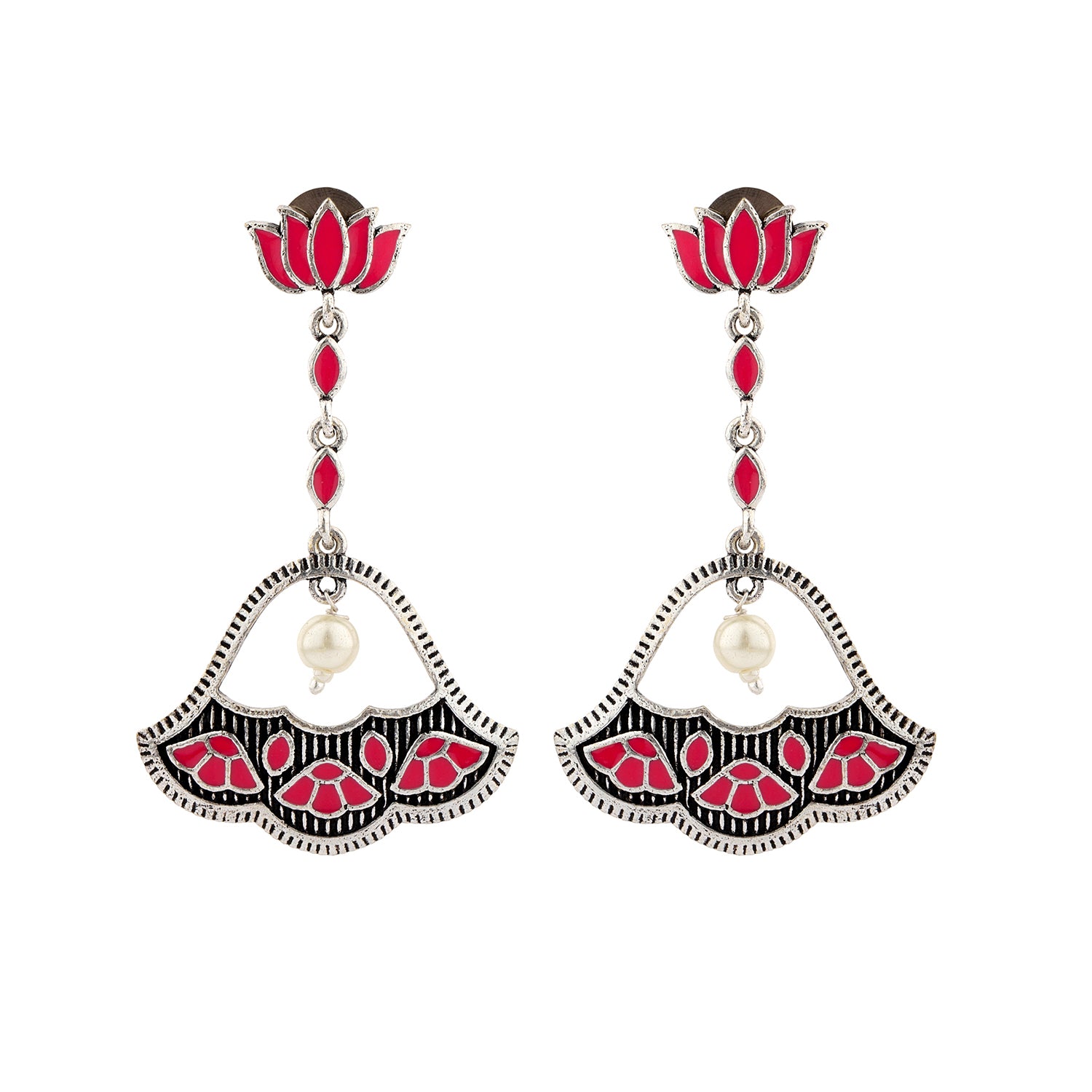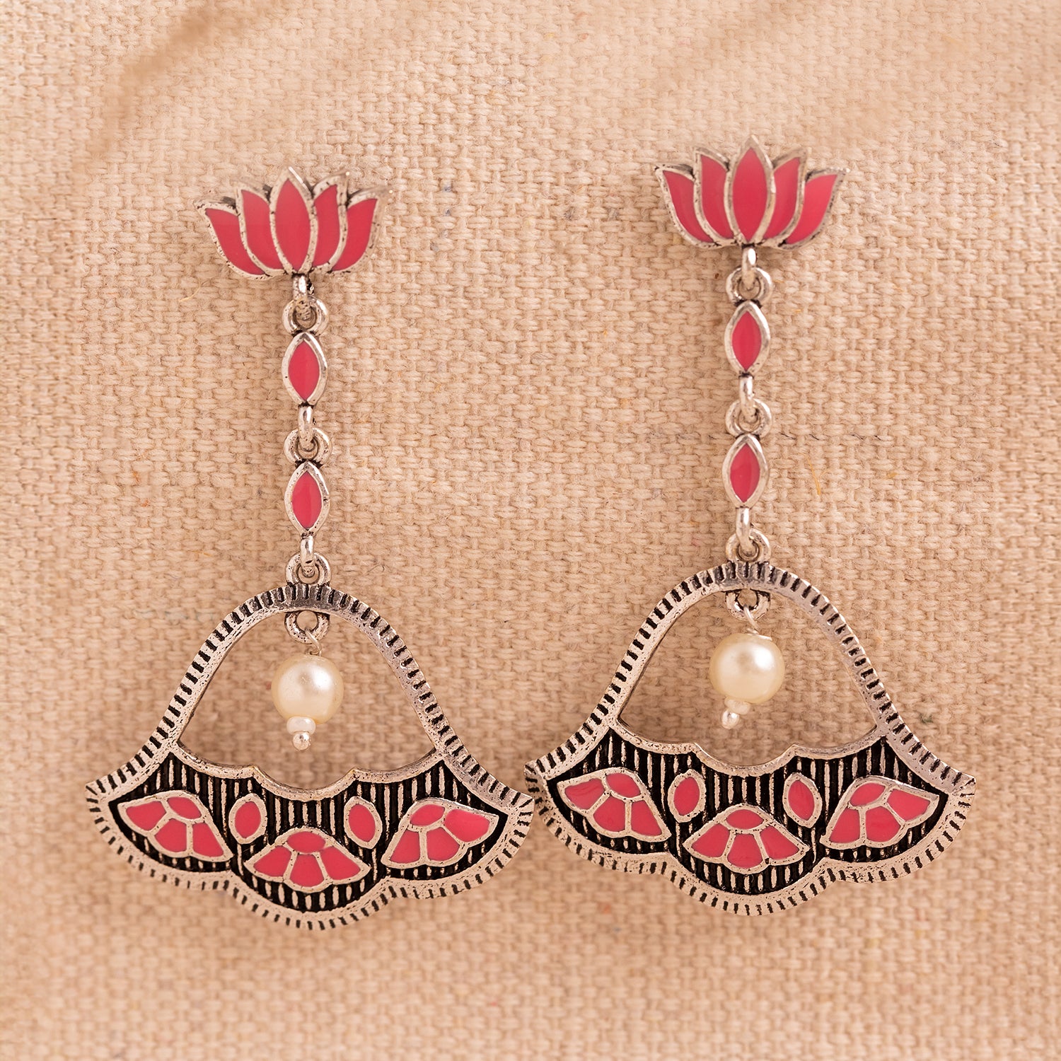 Madhubani Phoolkari Fables Oxidised Enamel Earrings
