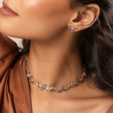 The Madhubani Vihang Vibes Oxidised Enamel Necklace Set is a mesmerizing blend of tradition and modern artistry, crafted in high-quality brass with a silver plating for a luxurious touch. Inspired by centuries-old Madhubani art, this statement necklace set features intricate jali work and vibrant enamel detailing, bringing a splash of color and cultural storytelling to your jewelry collection. The delicate bird motifs symbolize freedom and grace, making this designer necklace set both meaningful and stylish. Whether styled for everyday wear, vacations, office jewelry, or festive celebrations like Holi, Diwali, Raksha Bandhan, and Christmas, this oxidised necklace set for women pairs effortlessly with both Indo-western outfits and ethnic ensembles. A perfect gift for women, including sisters, girlfriends, wives, mothers, and lovers, it’s a thoughtful choice for occasions like Valentine’s Day, New Year, and Rakhi gifts for sisters. Let this artistic necklace set be your go-to piece for chic elegance, travel-ready jewelry, and effortless styling, celebrating heritage while staying on-trend.