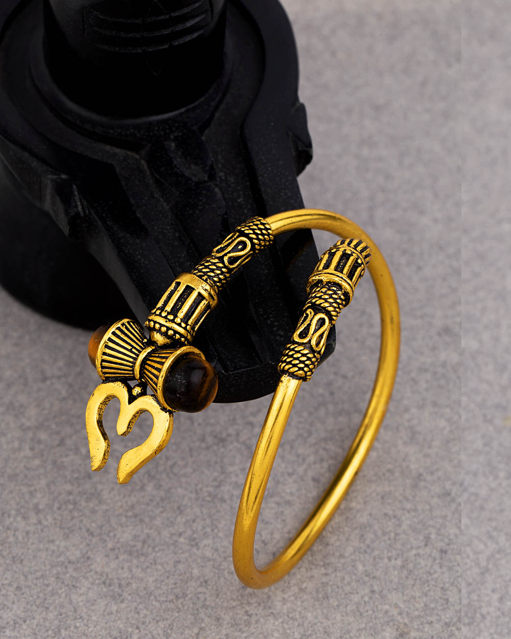 Men's OM inscription bracelet made from brass. Oxidized gold plated. Pair with ethnic attire. To make your accessories last longer avoid harsh chemicals and moisture. Keep dry, clean with dry cloth and wear with panache. "India�s largest fashion jewelry brand DARE, comes from the House of Voylla as a limited edition of handcrafted accessories for the modern Indian men. "
