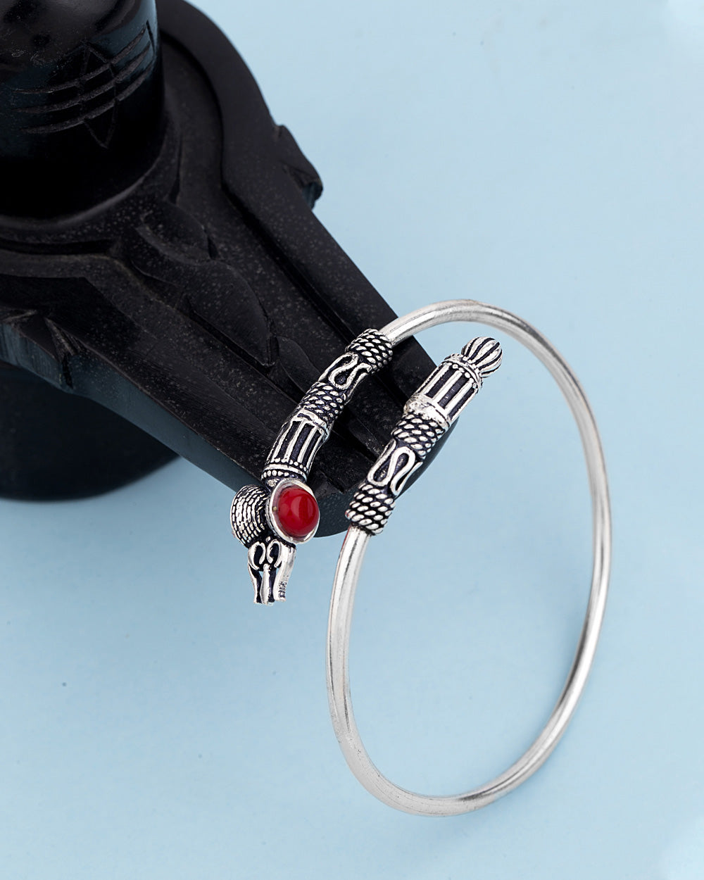 Open bracelet with OM inscription. Made from brass and oxidized silver plated. Wear with ethnic looks. To make your accessories last longer avoid harsh chemicals and moisture. Keep dry, clean with dry cloth and wear with panache. "India�s largest fashion jewelry brand DARE, comes from the House of Voylla as a limited edition of handcrafted accessories for the modern Indian men. "