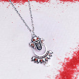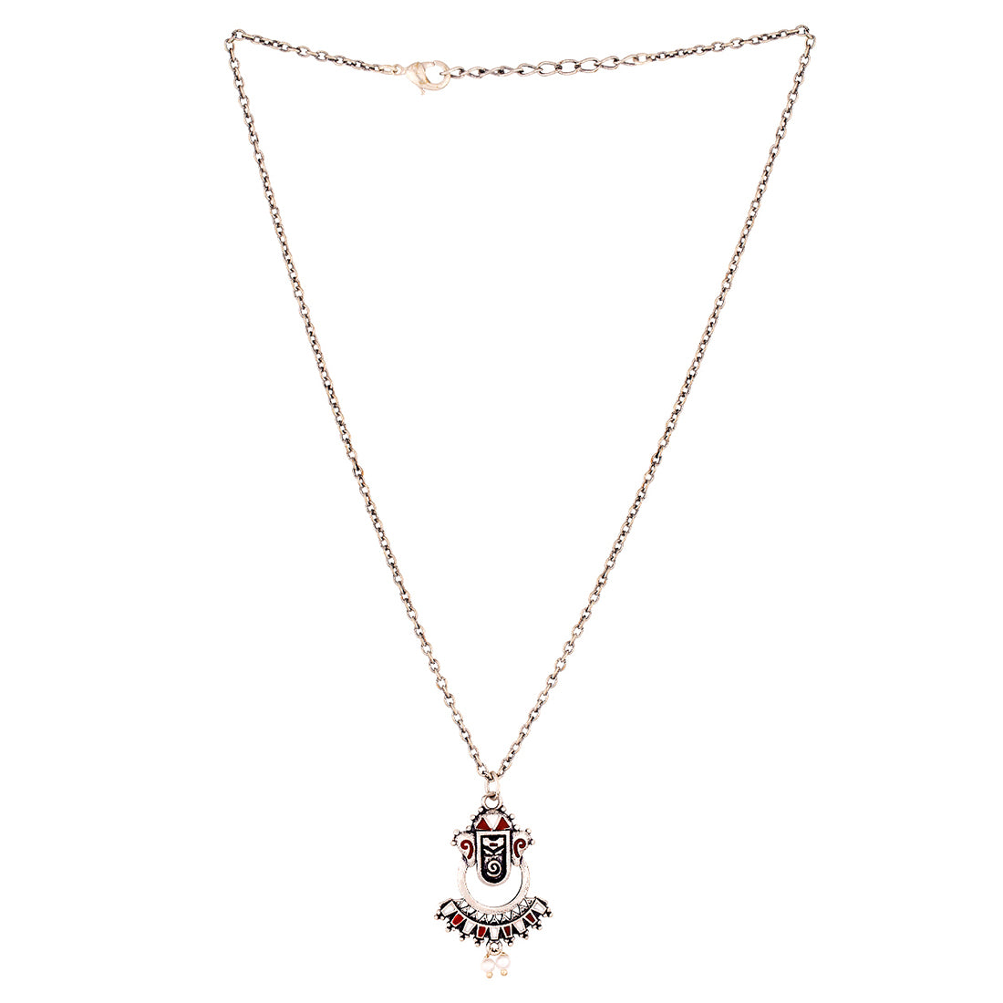Rangoli Pendant in a classic thin chain. Made from brass and oxidised silver plated. Enamaled and good for ethnic looks.