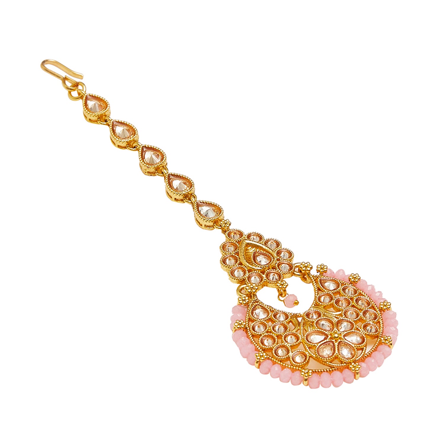 Gold Oppulence Maang Tika Set with Necklace and Earrings