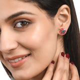 Marquise and Round Cut Pink CZ Gems Stud Earrings