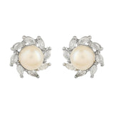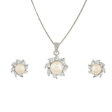 Marquise Cut CZ and Faux Pearls Brass Silver Plated Pendant Set