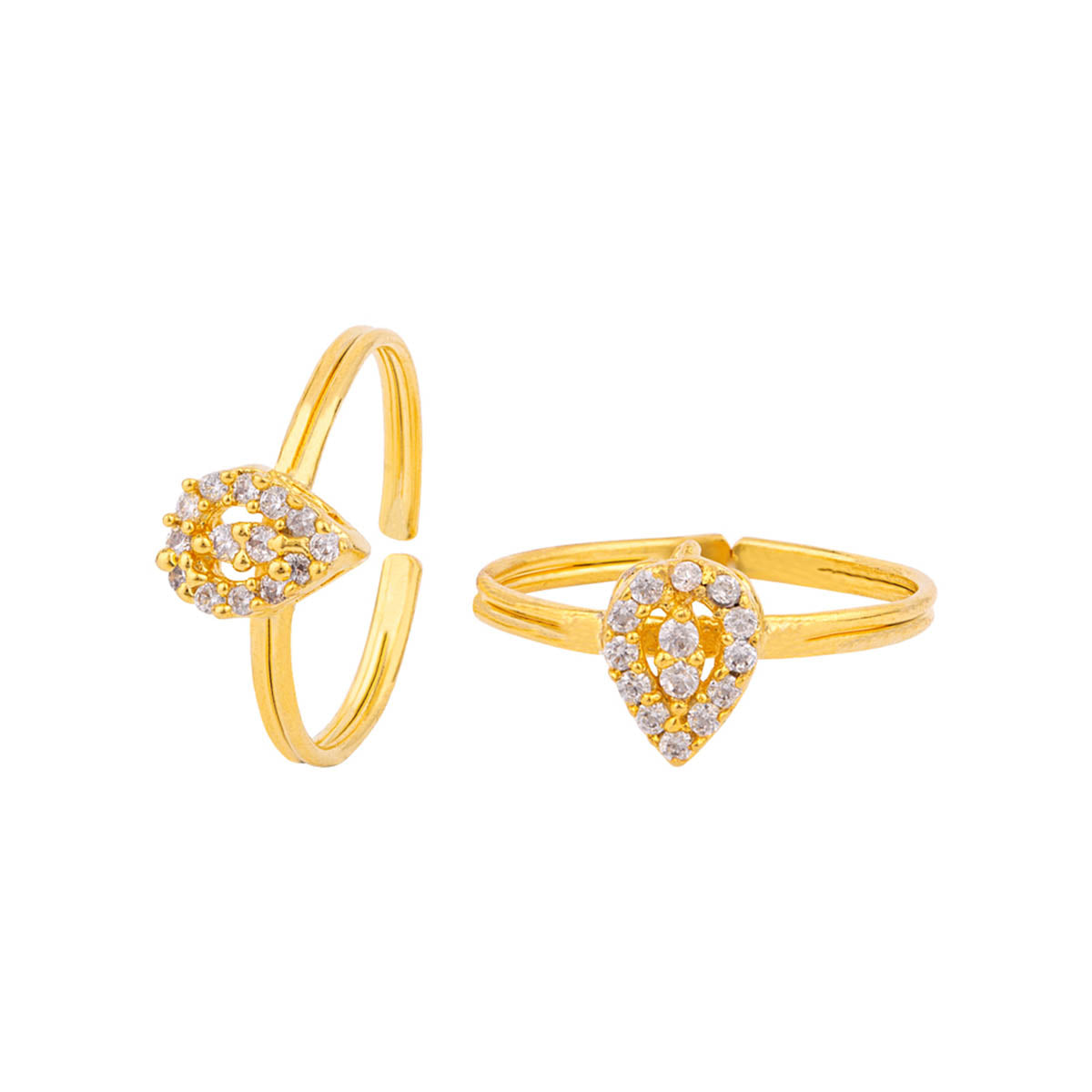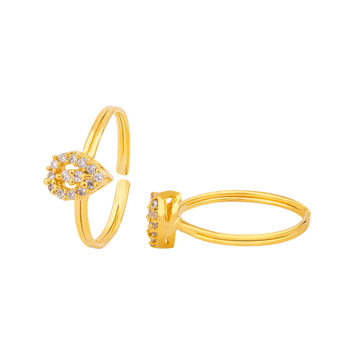 Marquise cut American Diamond gem adorned toe rings. Made from brass and yellow gold plated. Wear with ethnic attire.