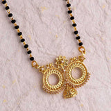 Floral motifs adorned brass mangalsutra with yellow gold plating. Good for casual and formal wear.