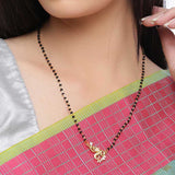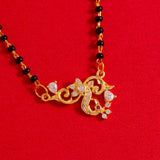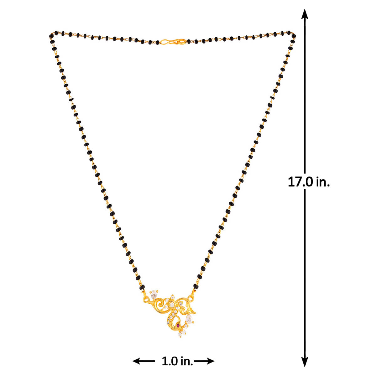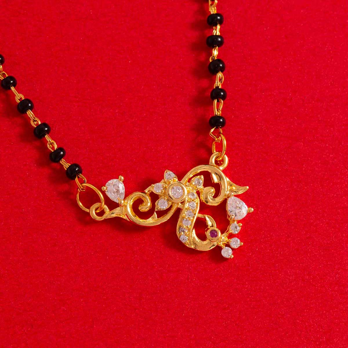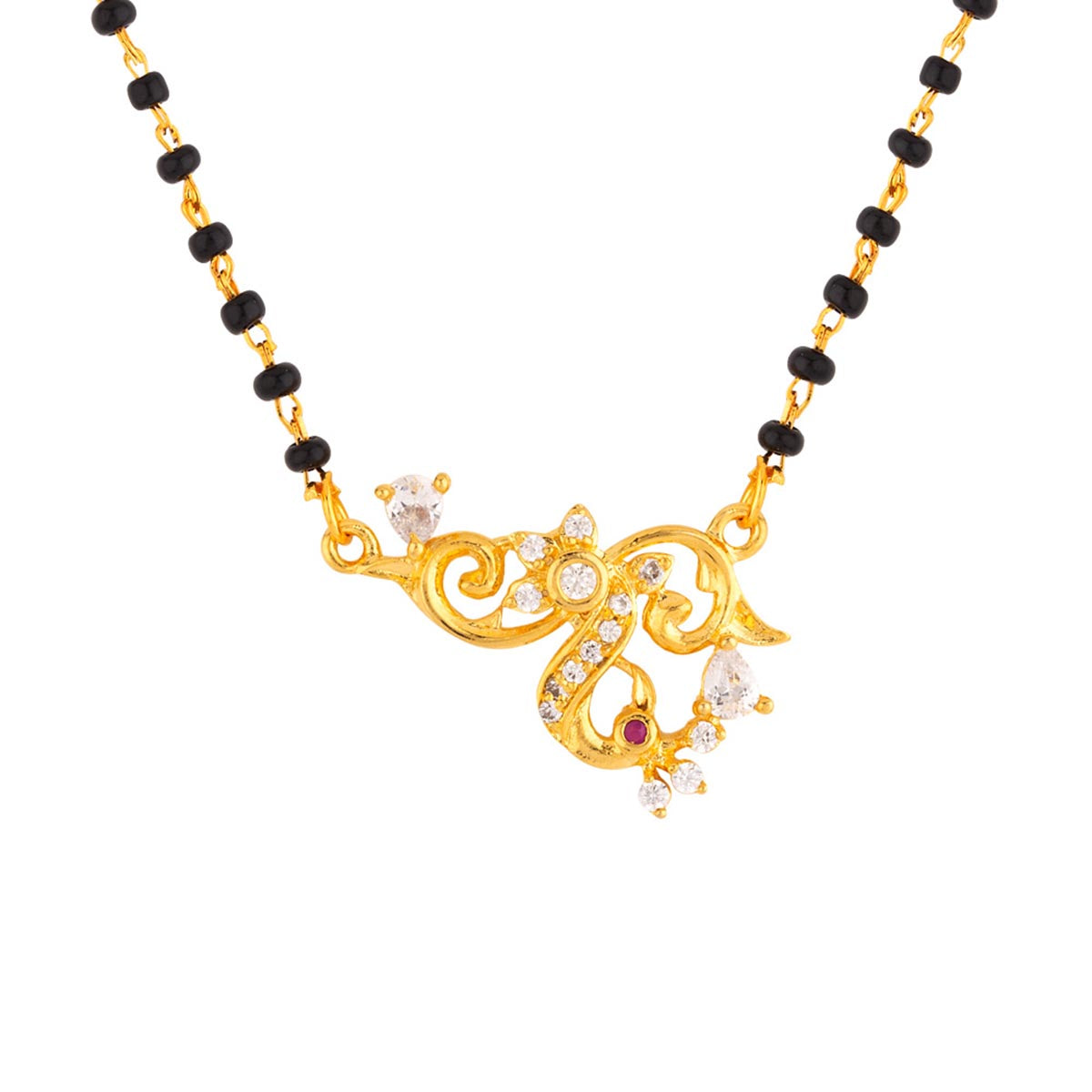 Yellow gold plated mangalsutra embellished with gems. Made from brass. Wear with a saree.