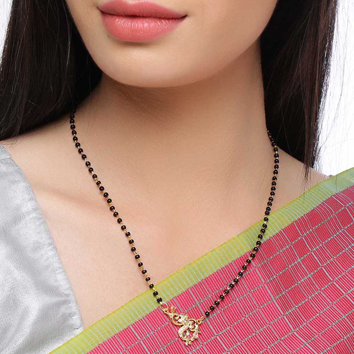 Yellow gold plated peacock motif mangalsutra made from brass. Good for ethnic looks.
