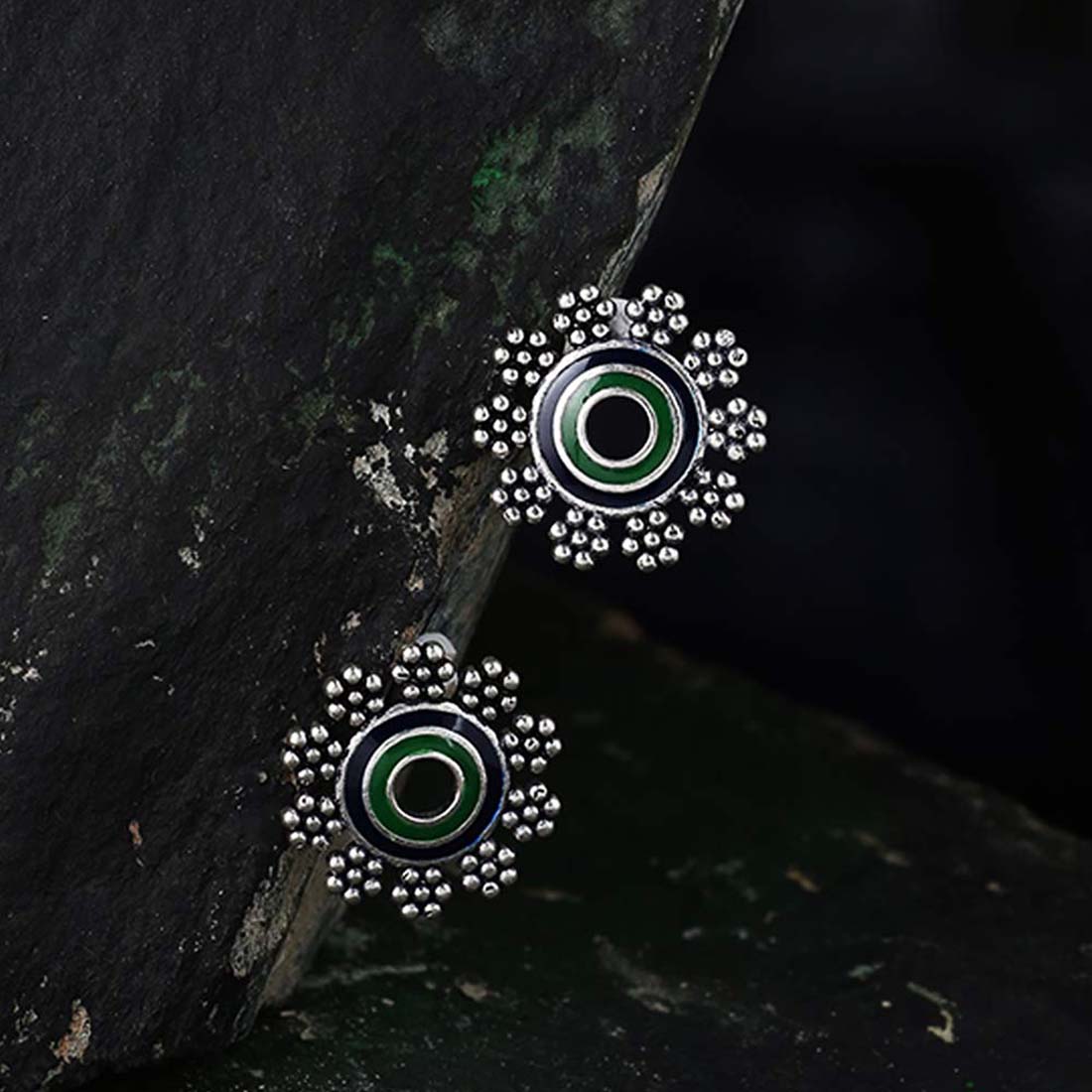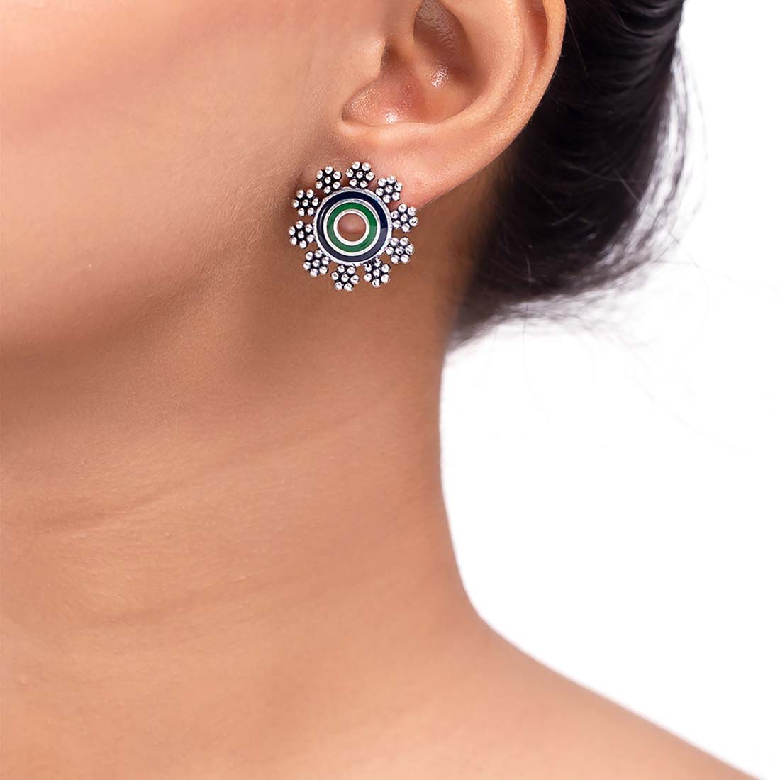Floral stud earrings inspired by the beauty of nature. Made from brass and oxidized silver plated. Wear with a casual summer dress.