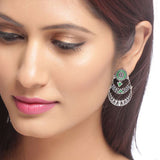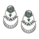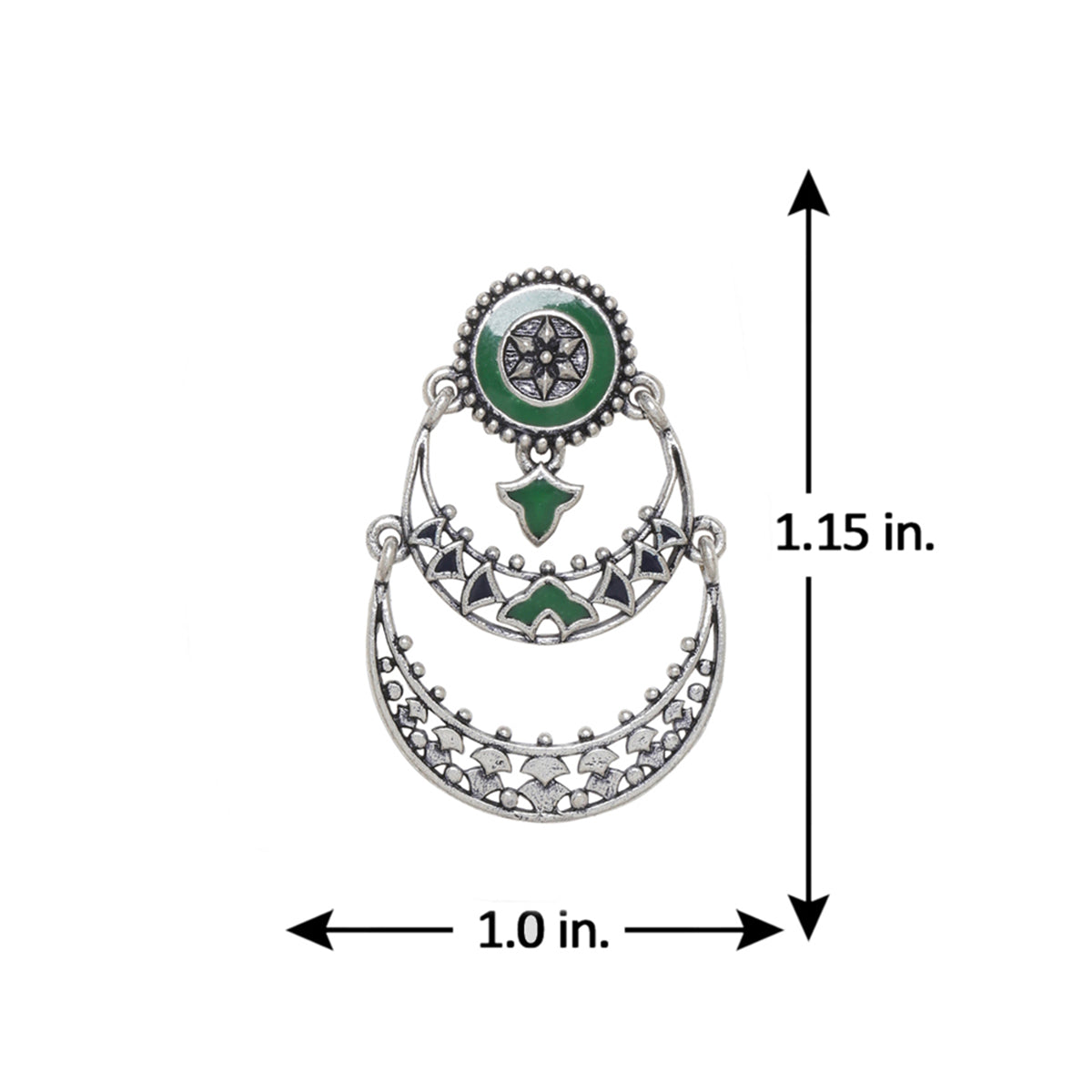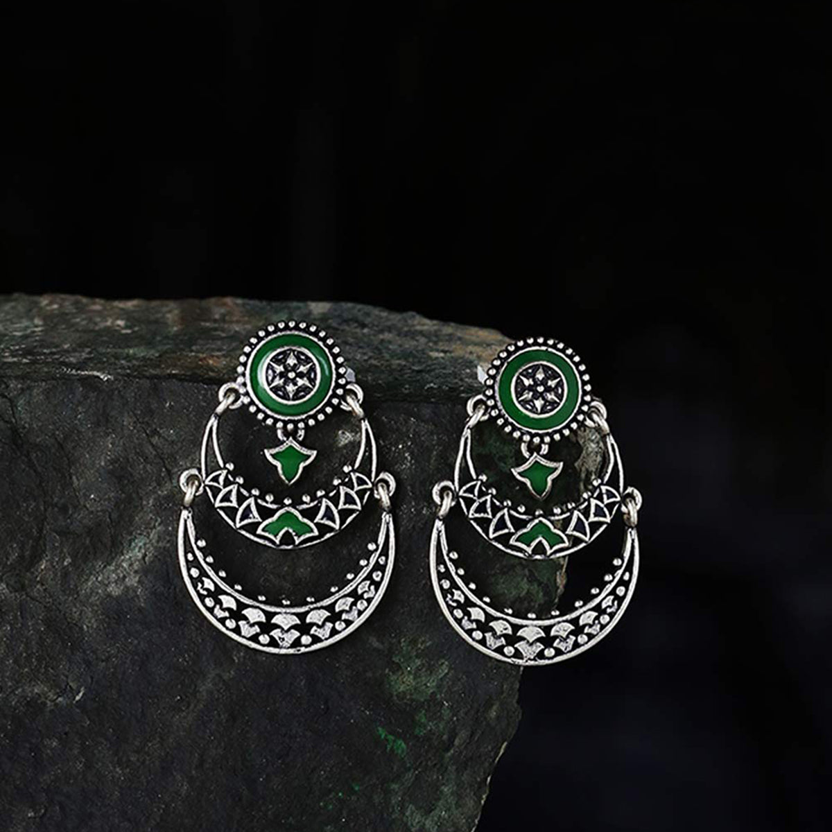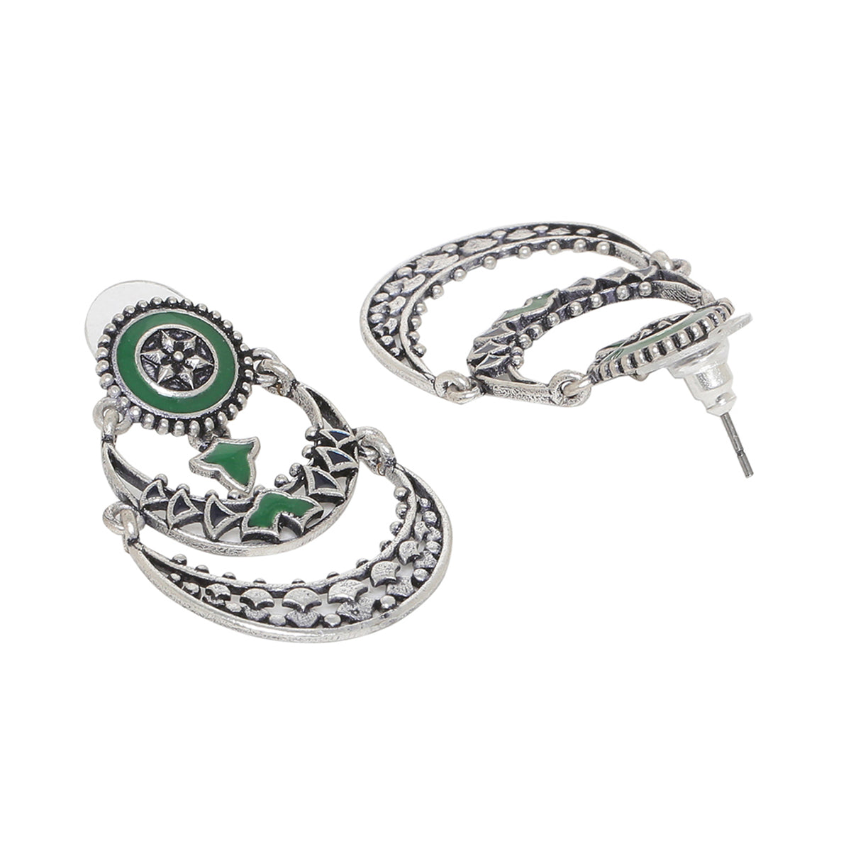 Layered hoop style earrings inspired by nature and traditional Mughal jewelry. Made from brass and oxidized silver plated. Good match for ethnic looks.