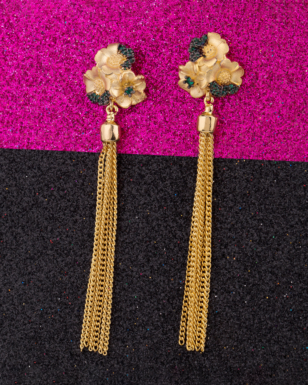 Hand sculpted yellow and green flowers and a bunch of gold tassels - these Antara earrings make quite a statement. Stylist’s Tip: Pair these Antara earrings with breezy summer wear to highlight the floral design. Look the Part: For those who love to spend their days outdoors.