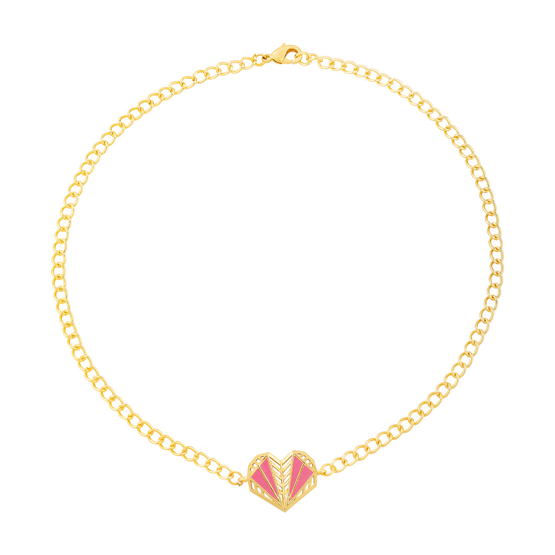 This Valentine's Day, show yourself some well deserved love with this geometric heart necklace. Made from brass, enameled and featuring a classic yellow gold plating, the necklace has a comfortable lobster clasp closure. Pair with a summer dress.