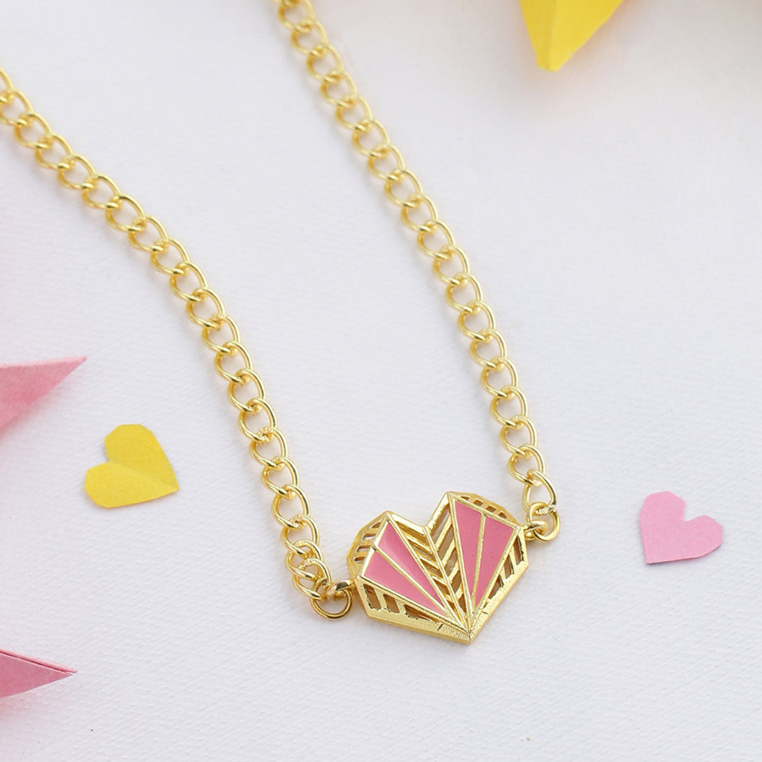 Mi Amore Enameled Geometric Heart Necklace