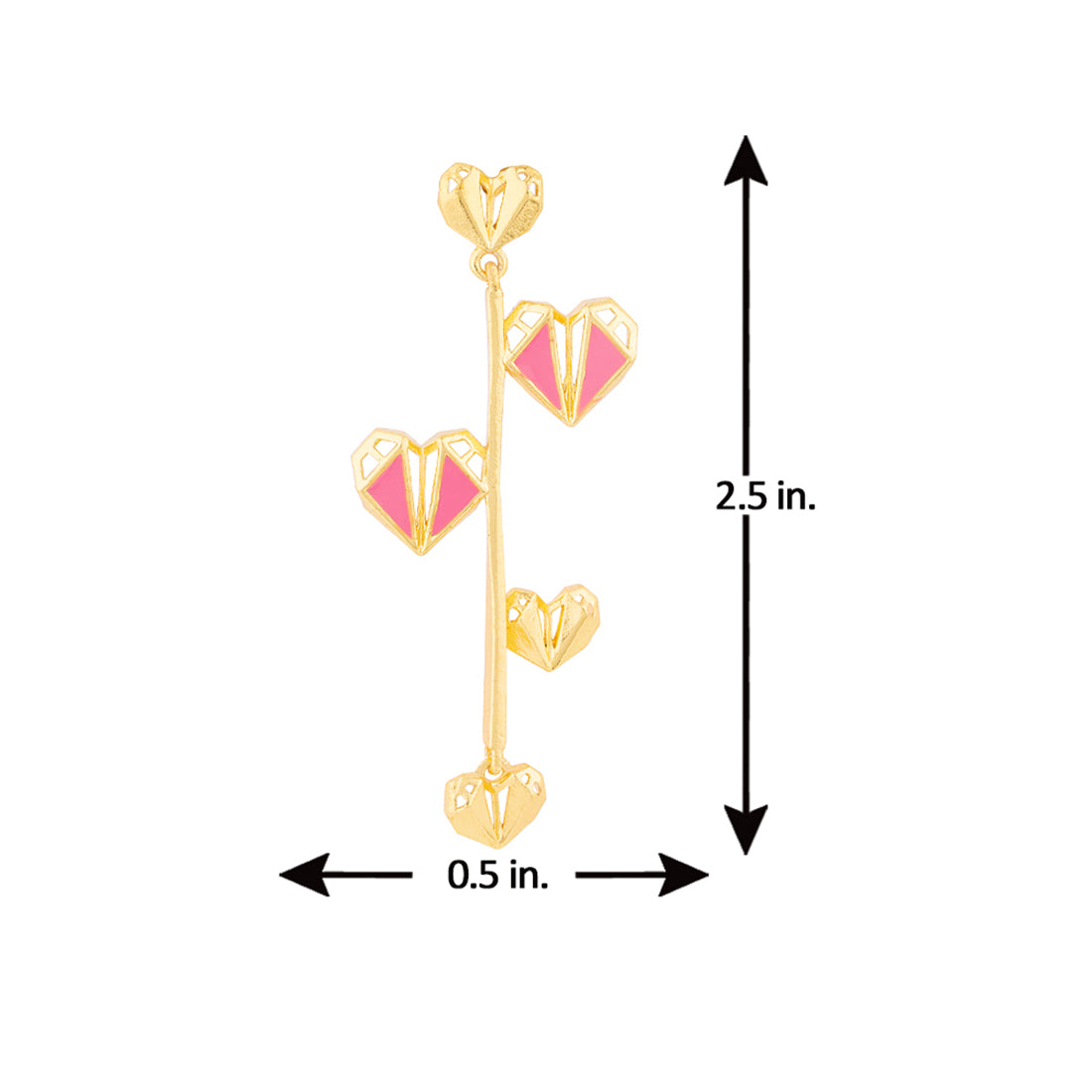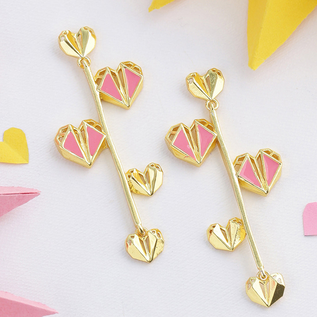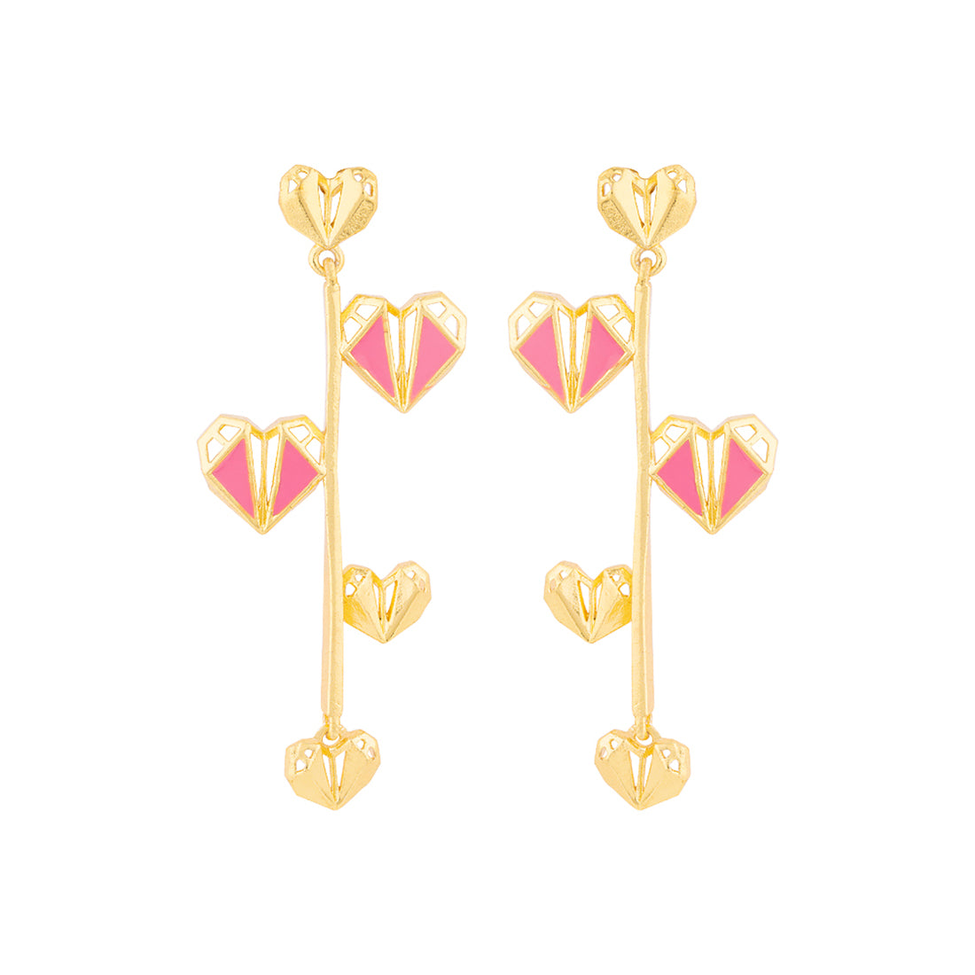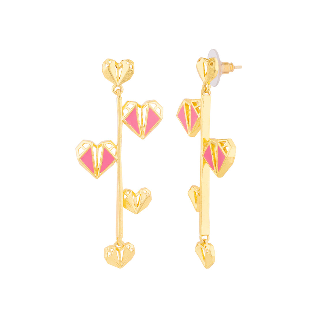 Celebrate yourself and being a woman this Valentine's Day with these hearts drop brass earrings. Edgy and modern, the enameled pair has been given a yellow gold plating. Wear with a summer dress.
