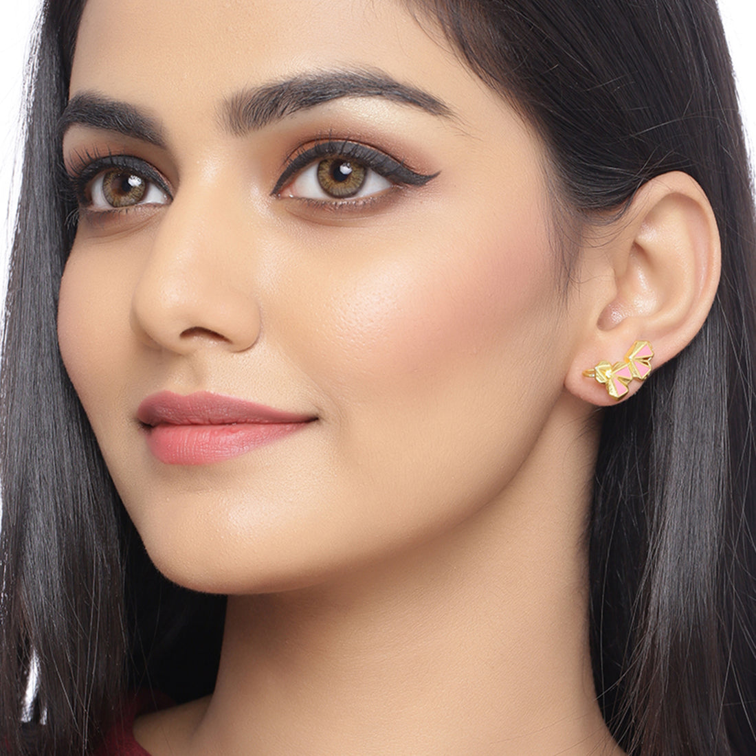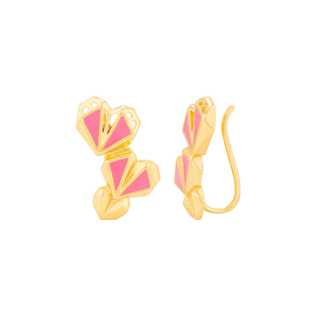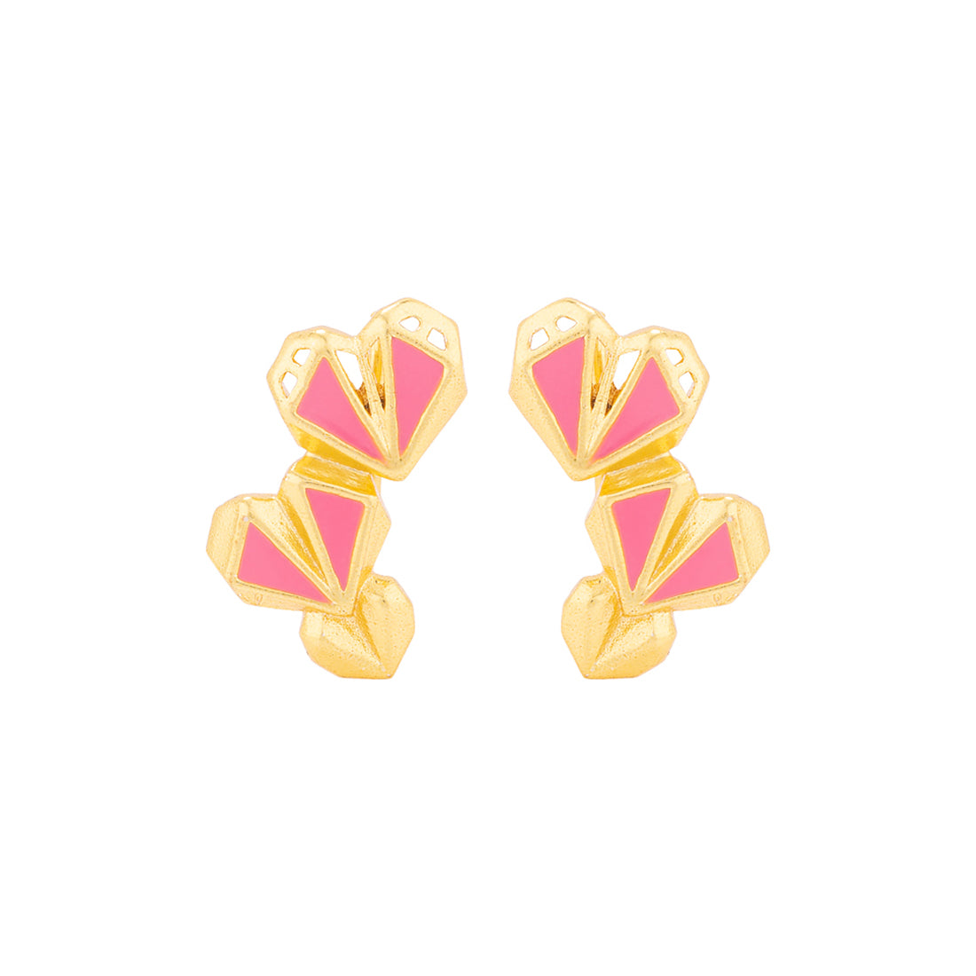 Hearts motifs bali style earrings, inspired by the idea of celebrating self love and being a woman. Fashioned out of brass, the enameled pair has been given a classic yellow gold plating. Wear with everyday attire.