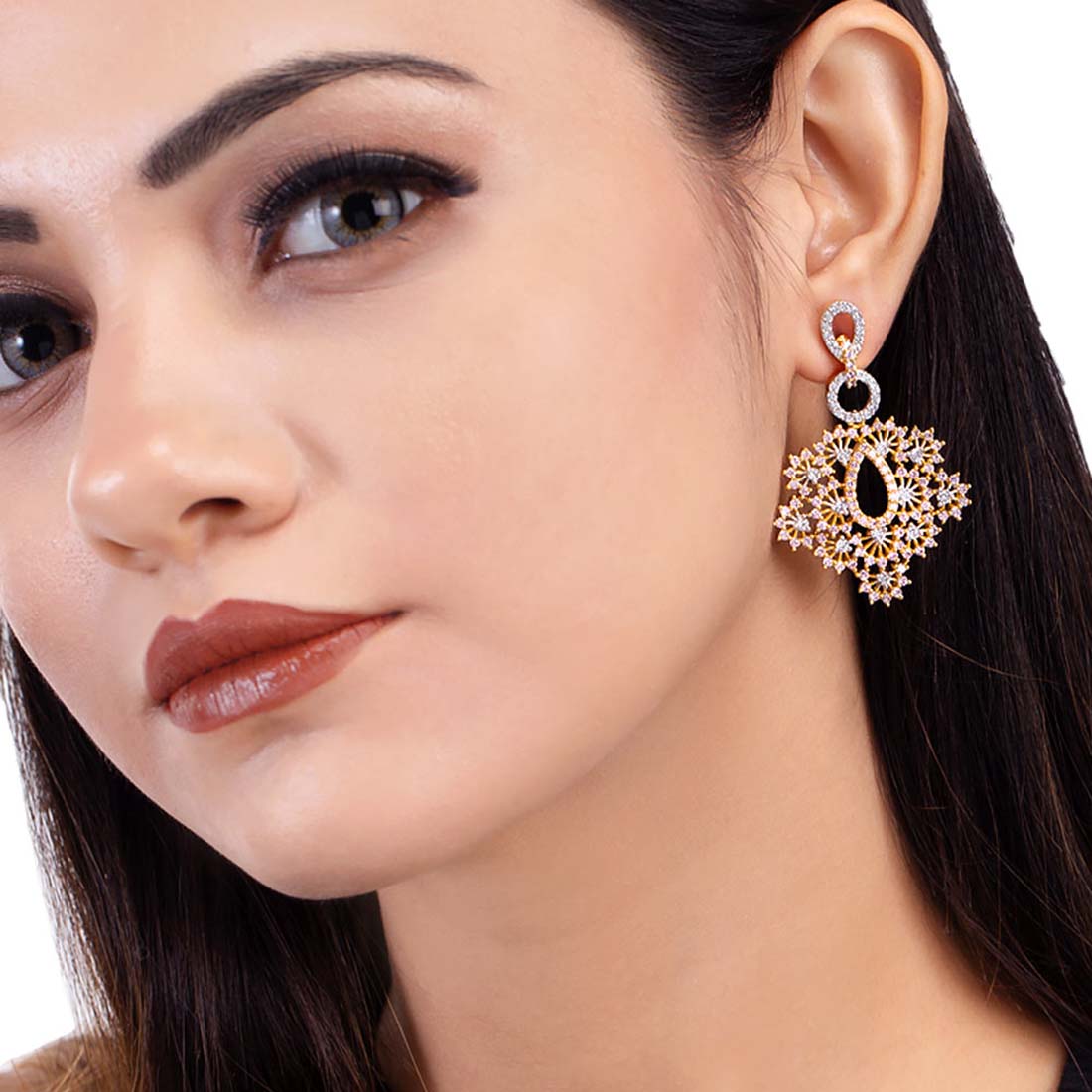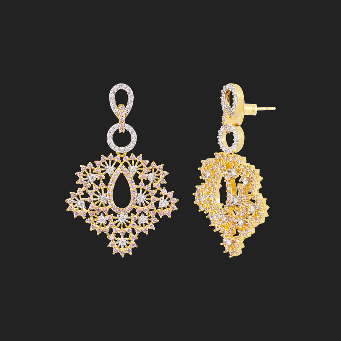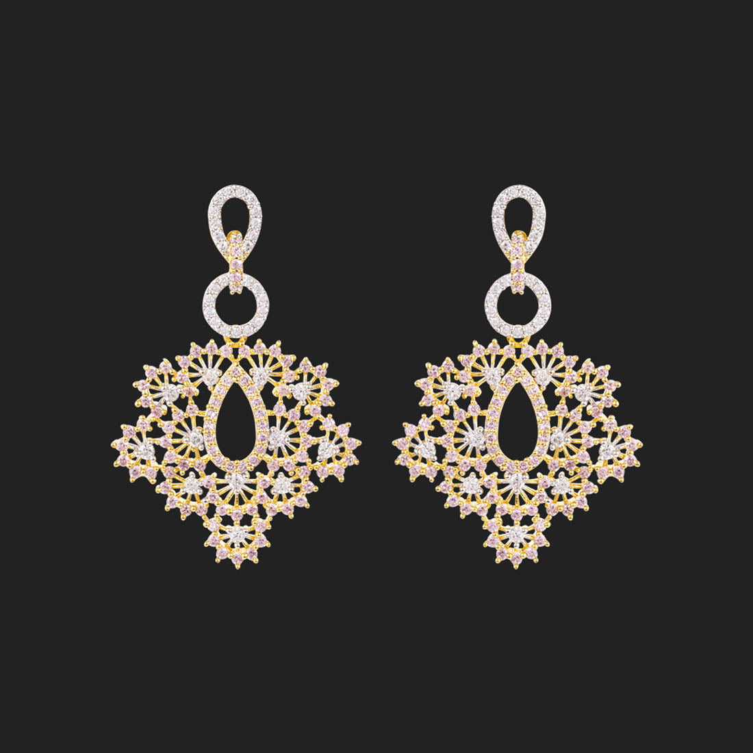 Inspired by Paris's sights and sounds, the chandelier earrings have been crafted from brass and two tone plated. Embellished with gems and a good match for formal looks.