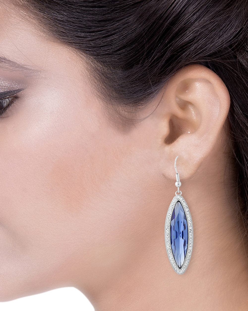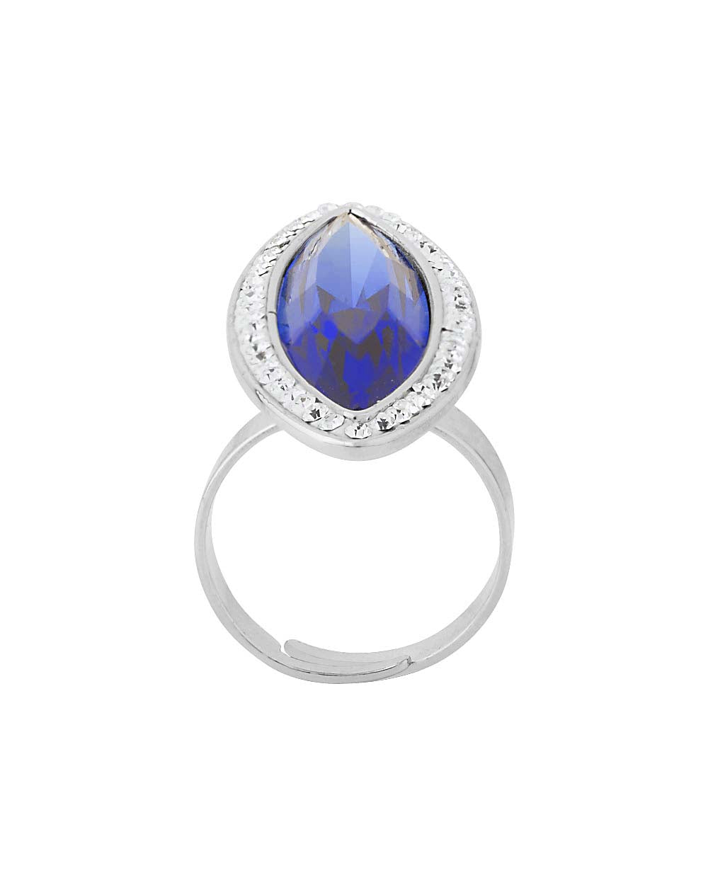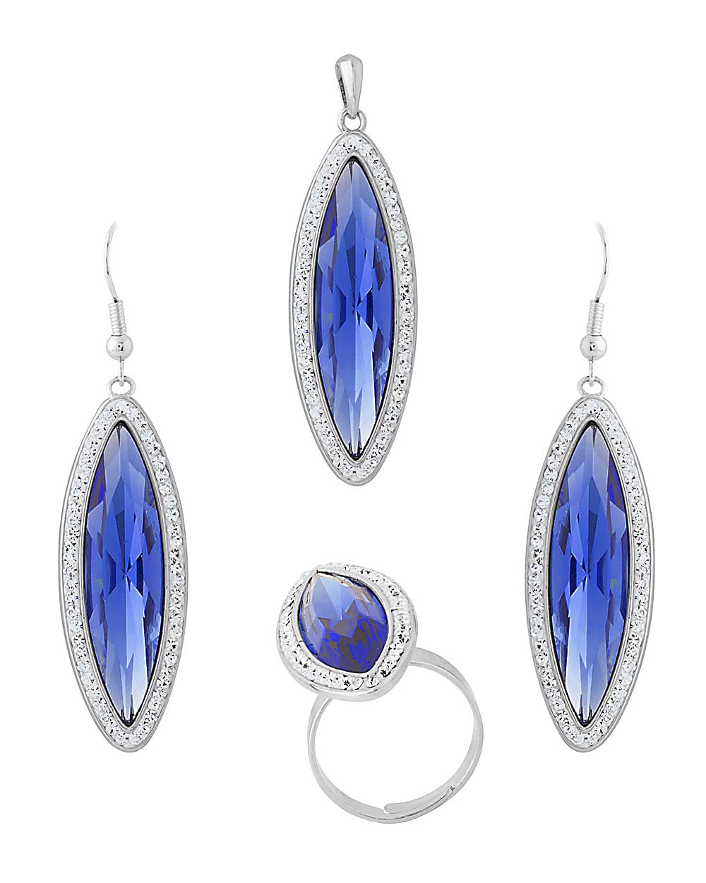 Accessorize yourself with the matching combo of earrings, ring and pendant. Featured with silver tone American Diamond embellishment and a blue color stone. Perfectly go with your favorite blue outfits.