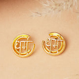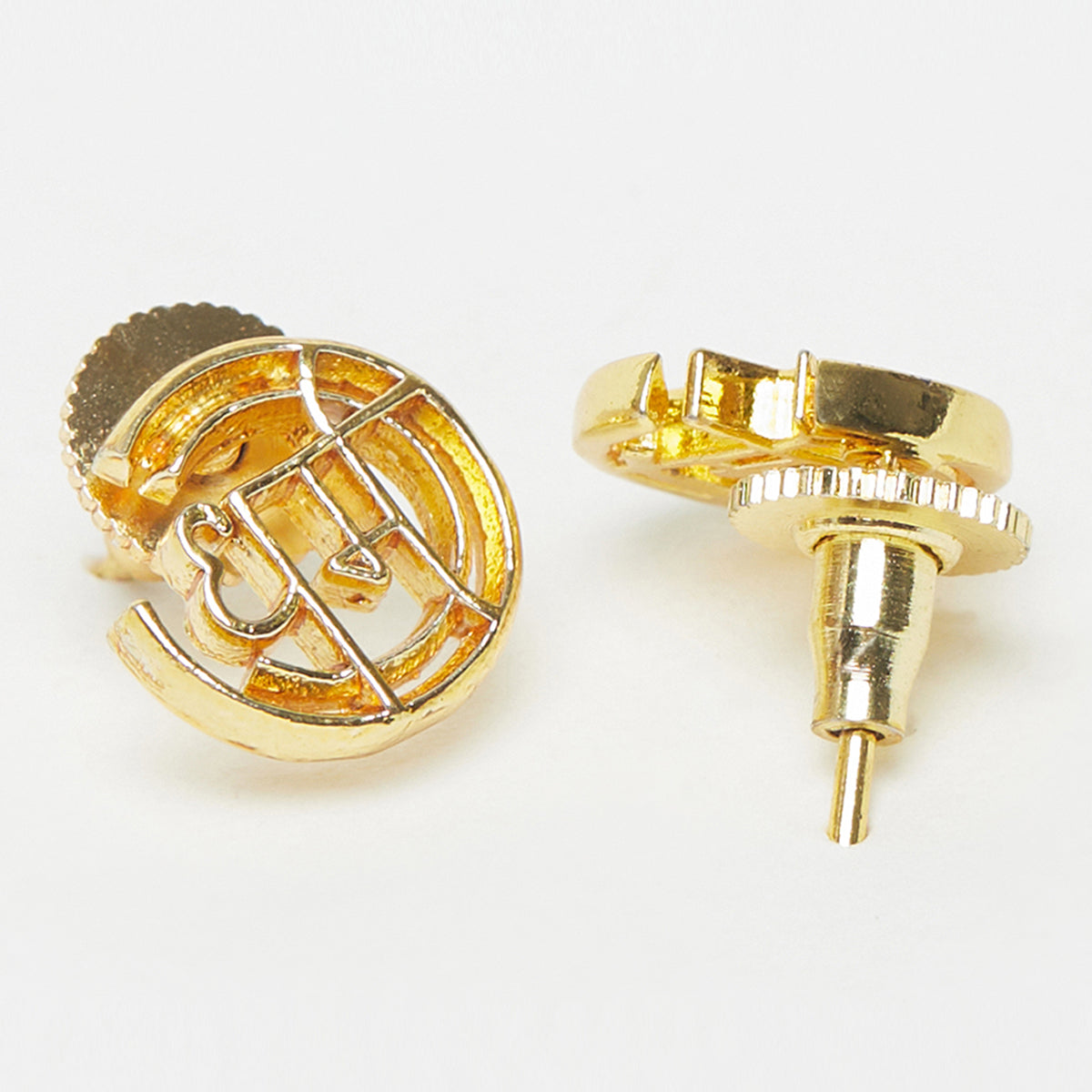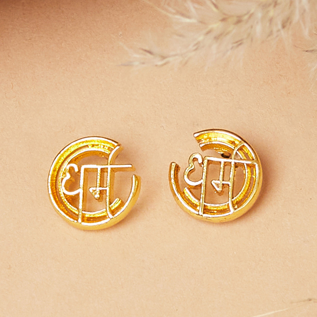 Add a touch of uniqueness to your style statement with this amazing pair of brass earrings. These gold-plated studs are carved out with Hindi "Dharma". You can wear this pair with your classy saree at social gatherings.