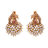 Gold Opulence Mor Mahal Temple Danglers Earrings