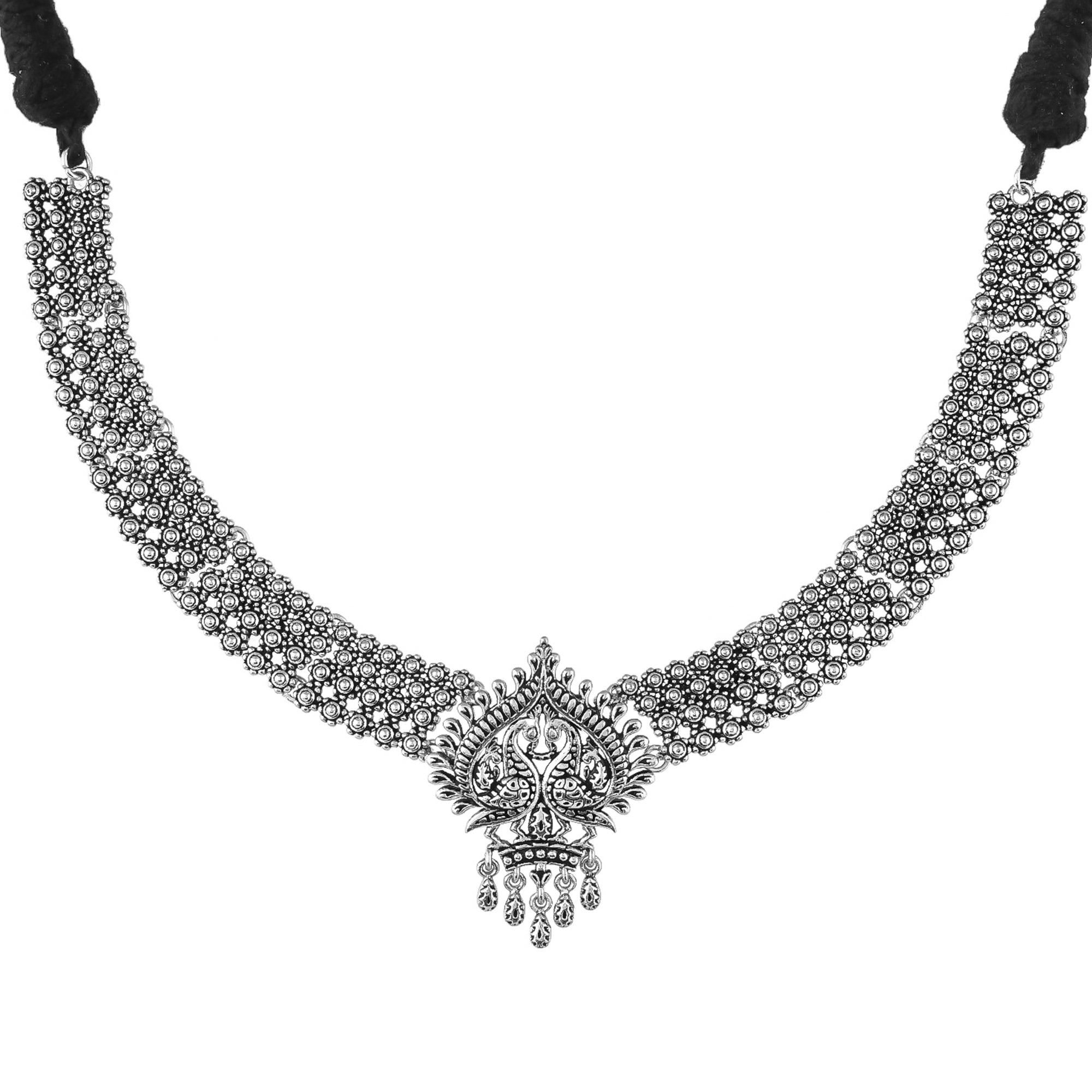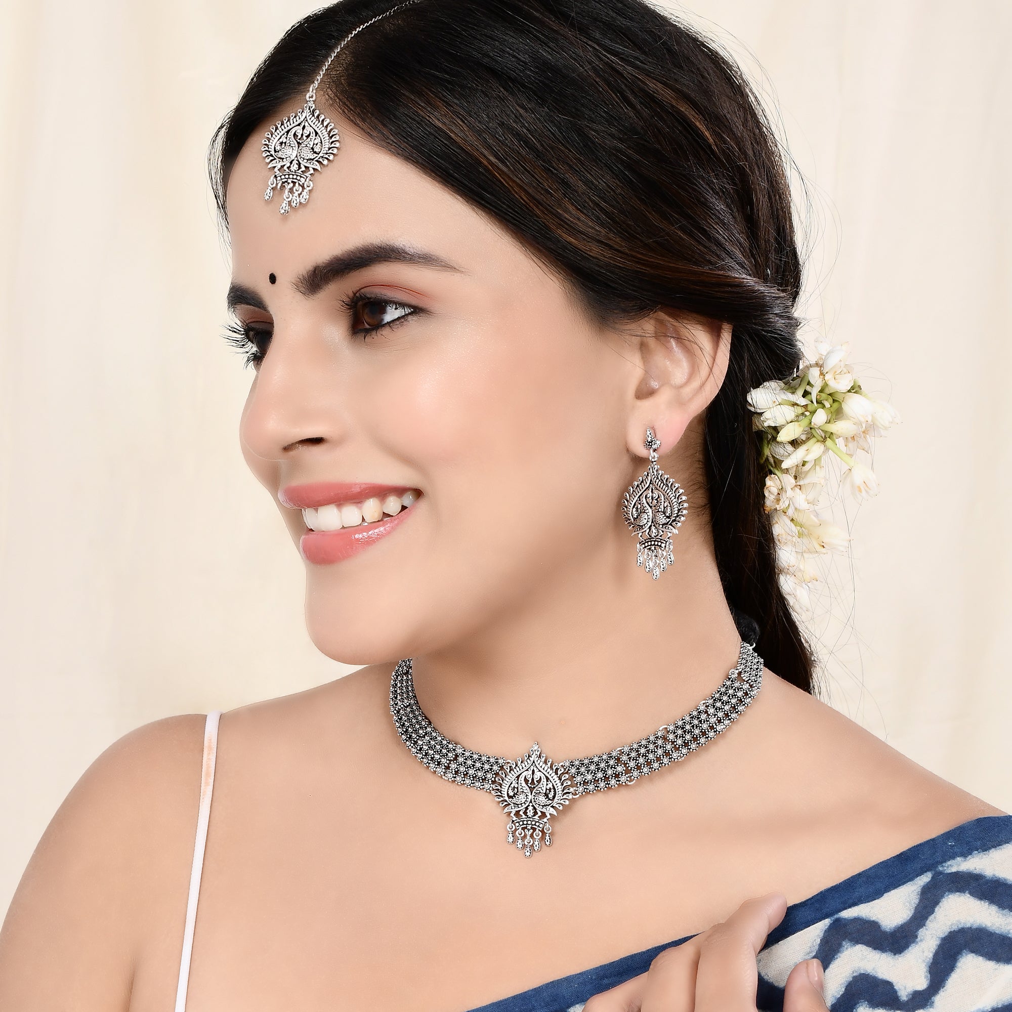 This collection is inspired by Gond art, showcasing the beauty of nature through the elements of peacocks, flowers, and leaves beautifully woven into stunning oxidized jewelry pieces.