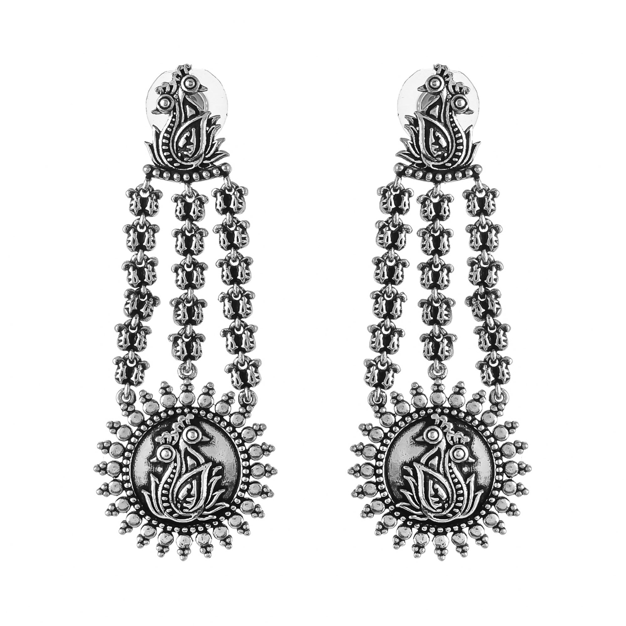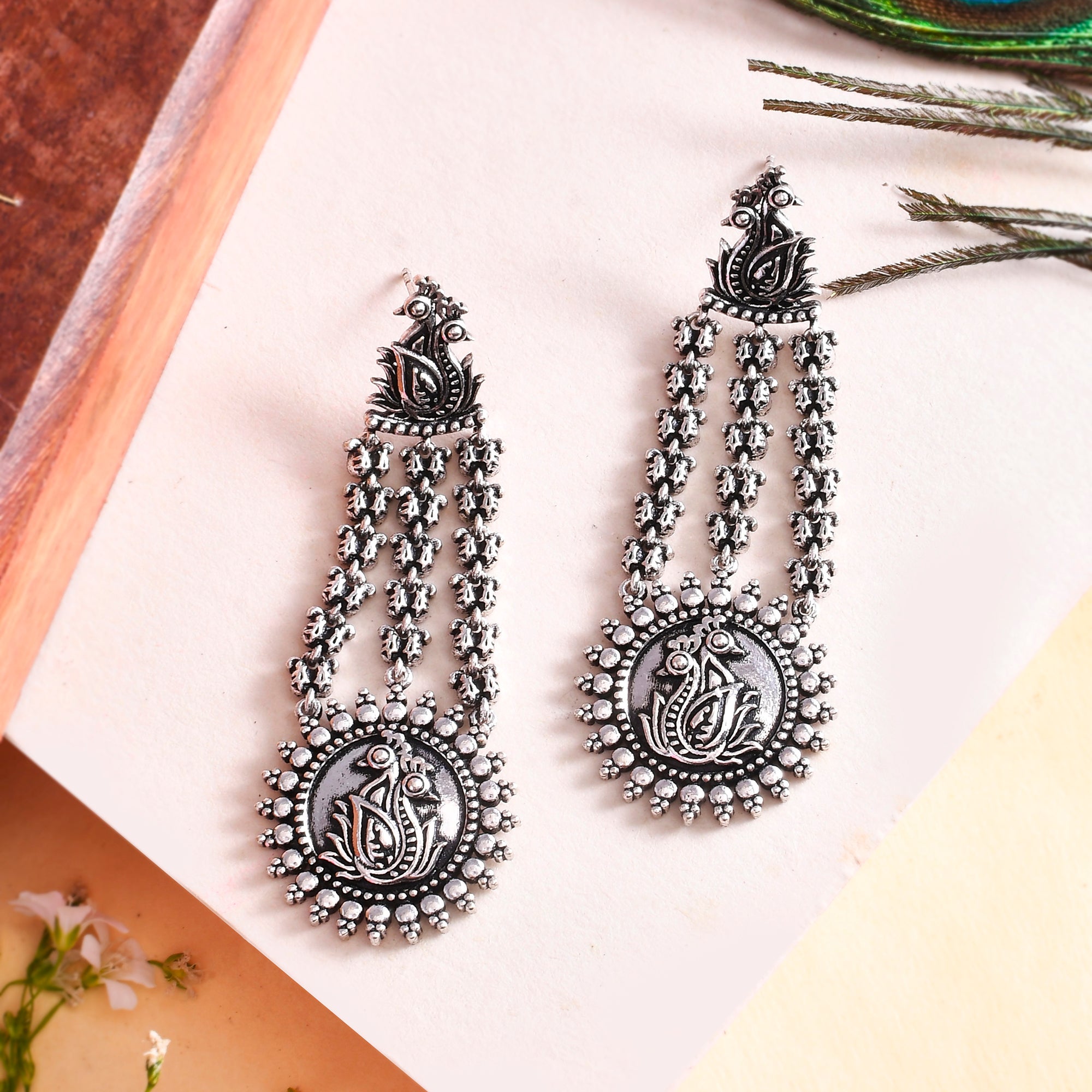 This collection is inspired by Gond art, showcasing the beauty of nature through the elements of peacocks, flowers, and leaves beautifully woven into stunning oxidized jewelry pieces.
