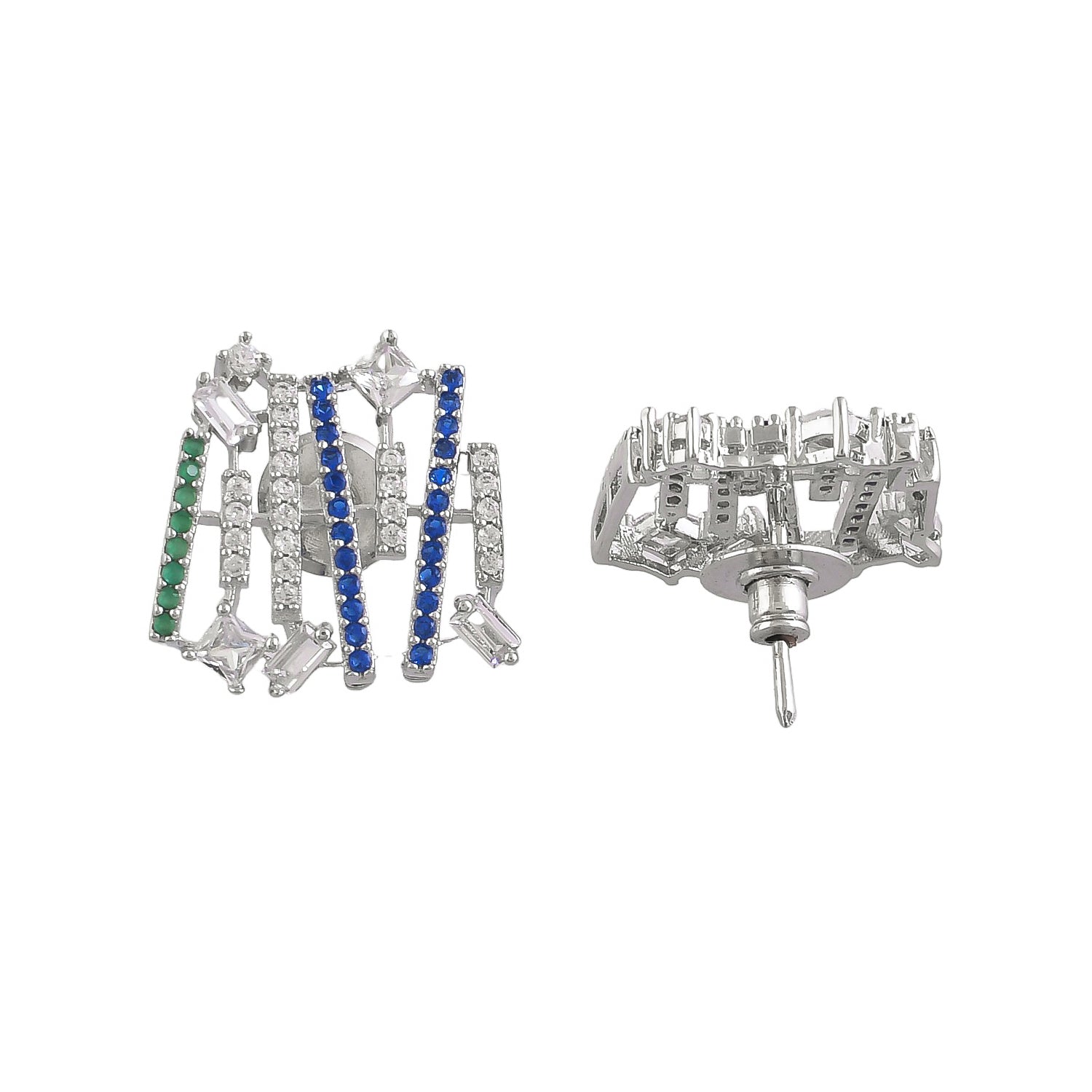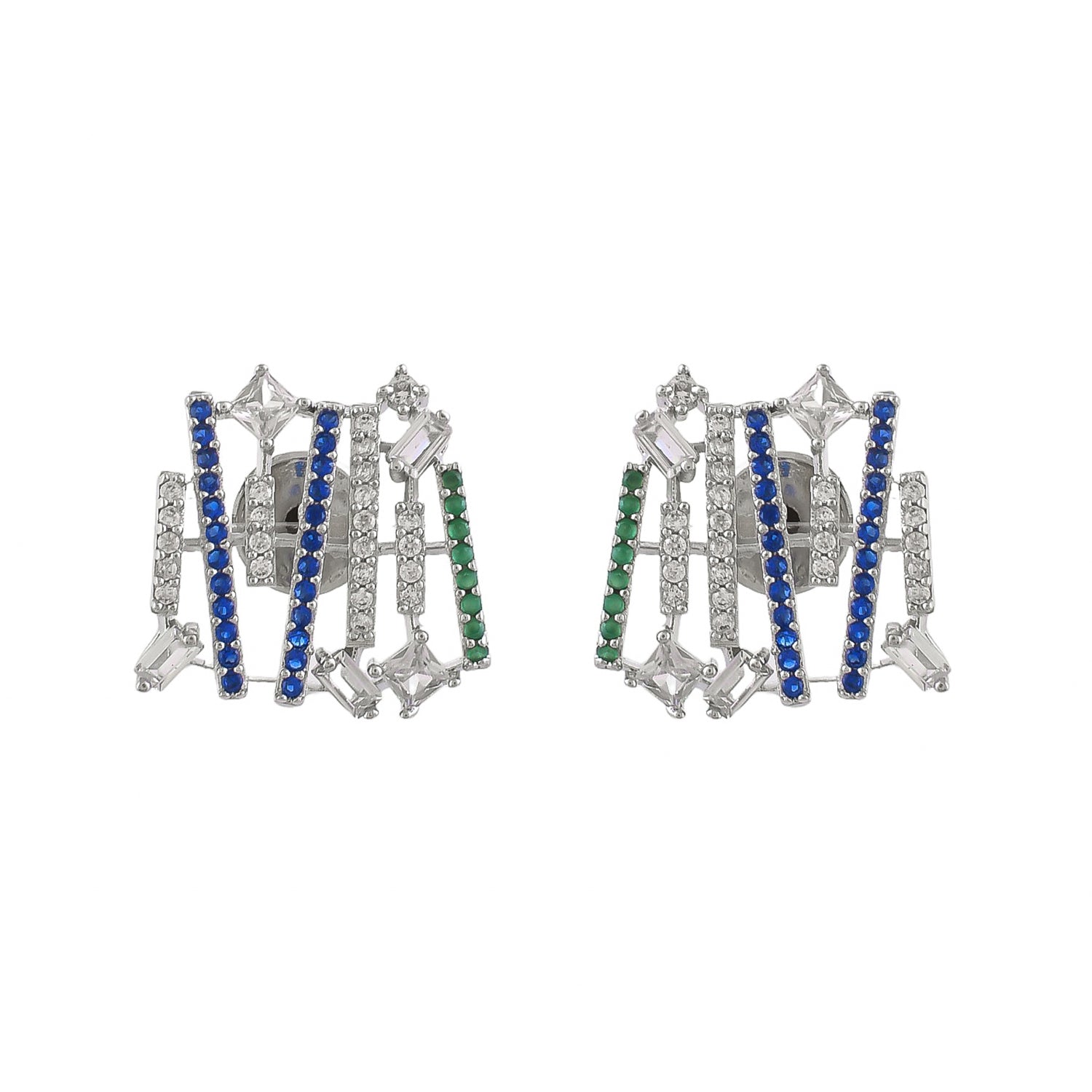 A chic expression inspired by Cubism. Multicolored abstract cubic zirconia stones adorn this set, capturing the avant-garde spirit of the art movement. Embrace contemporary elegance and make a chic statement with this asymmetrical accessory.