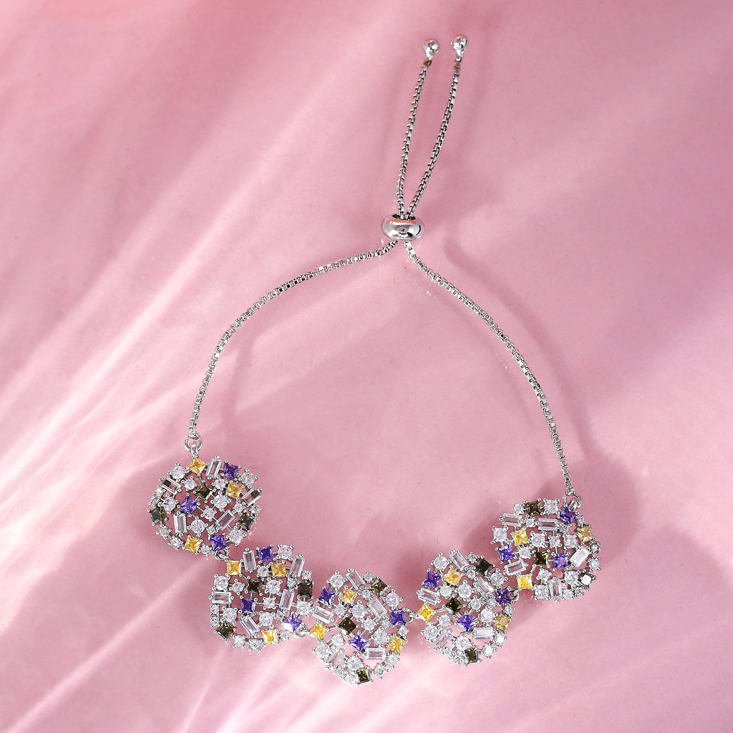 A chic tribute to Cubism. Multicolored cubic zirconia stones adorn this sophisticated Bracelet, reflecting the avant-garde spirit of the art movement. Embrace contemporary elegance and elevate your style with this captivating accessory. Perfect for adding glamour to any ensemble.