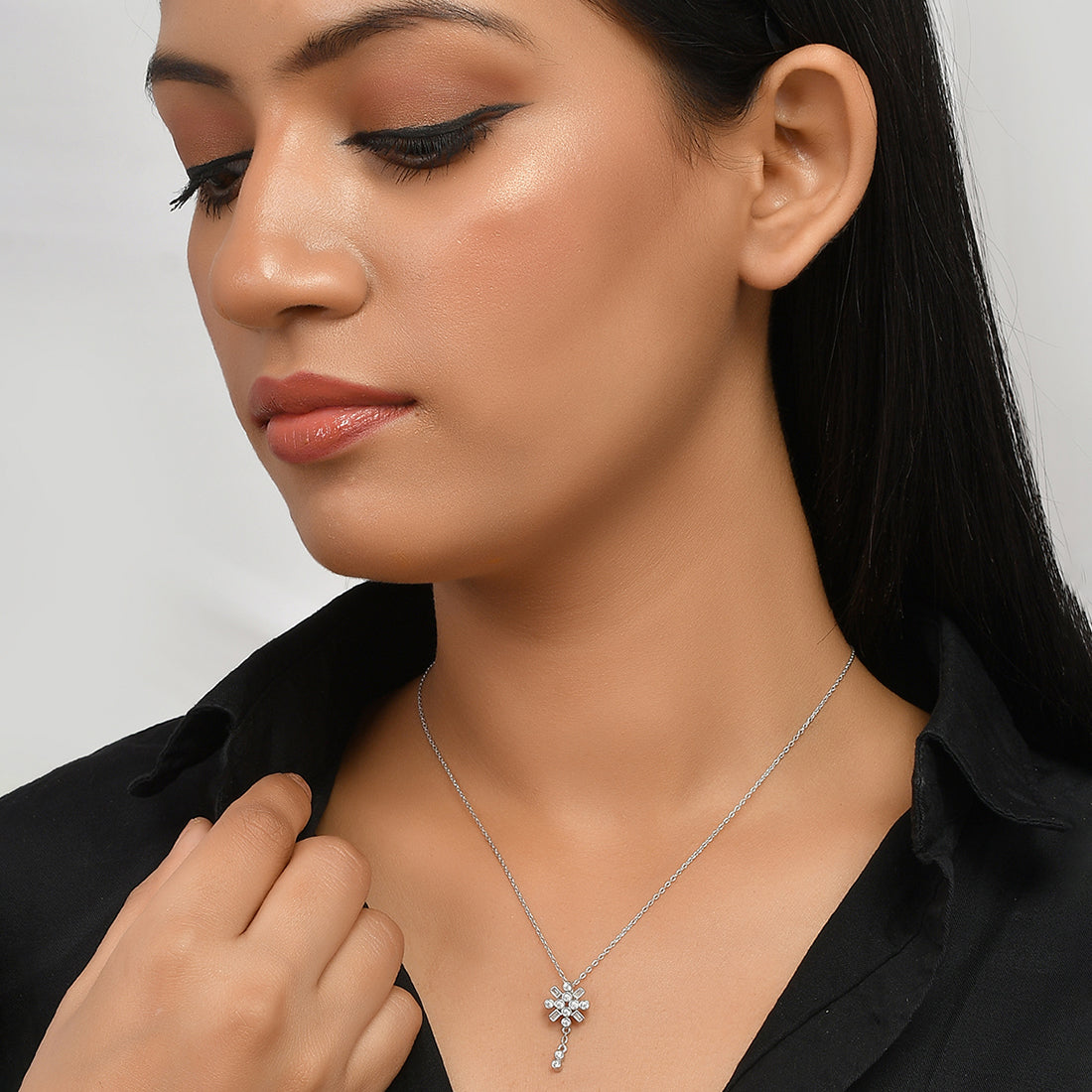 Mother’s Day Collection Round Cut Zircons Sterling Silver Pendant with Chain