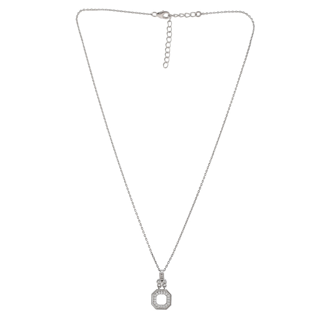 An opulent 925 sterling silver pendant threaded in a silver serpentine chain with a lobster claw clasp. The round cut zirconia gemstones adorned pendant has been given a white rhodium plating. The perfect gift for Mother’s Day.