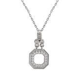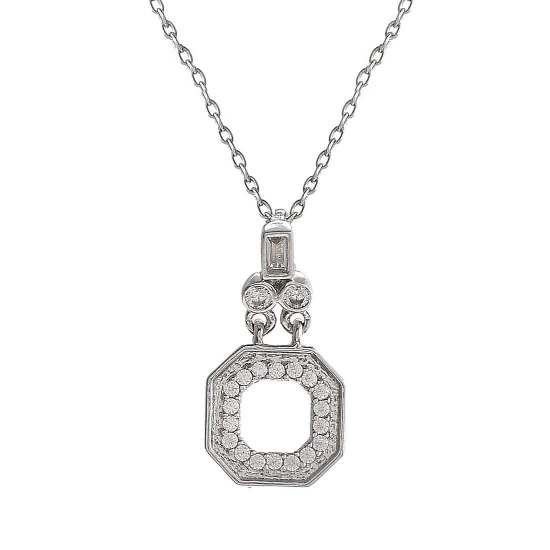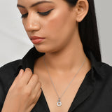 Mother’s Day Collection Sterling Silver Round Cut CZ Pendant with Serpentine Chain