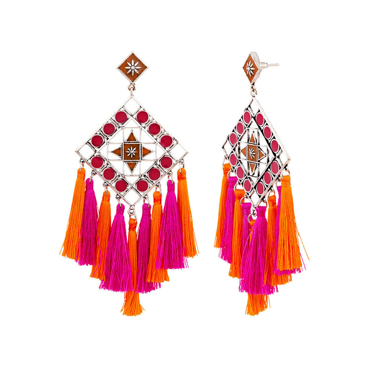 Nakhrali Coloured Tassels Enameled Earrings