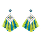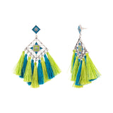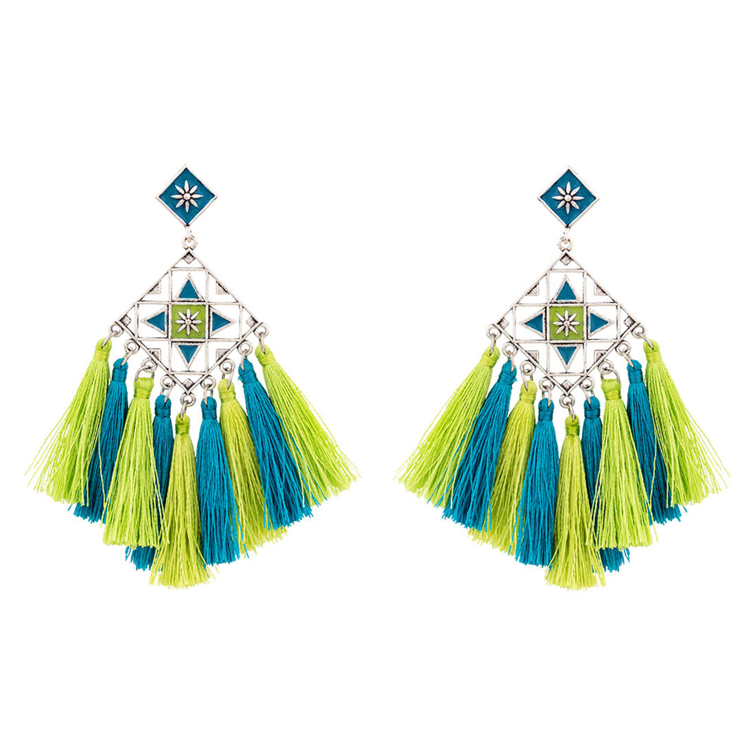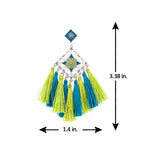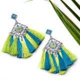 Green tassels drop earrings made from brass. Oxidised plated and enameled. Good for ethnic looks.