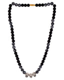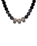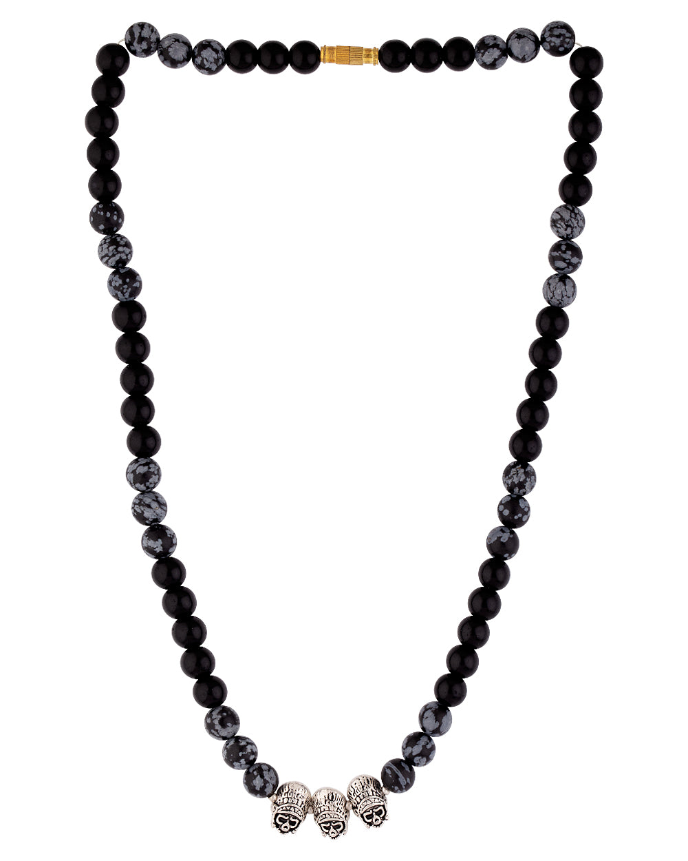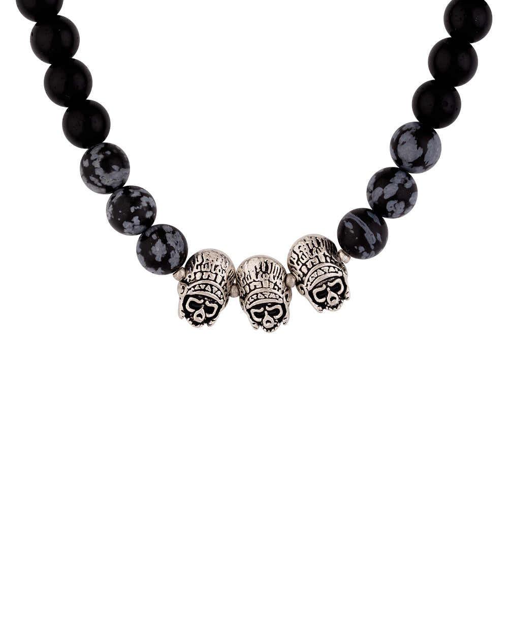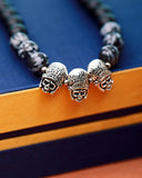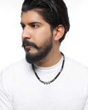 Beaded men's chain with metal embellishments, made from brass. Oxidised silver plated, with a screw closure. Wear with casual attire. To make your accessories last longer avoid harsh chemicals and moisture. Keep dry, clean with dry cloth and wear with panache. "India’s largest fashion jewelry brand DARE, comes from the House of Voylla as a limited edition of handcrafted accessories for the modern Indian men. "