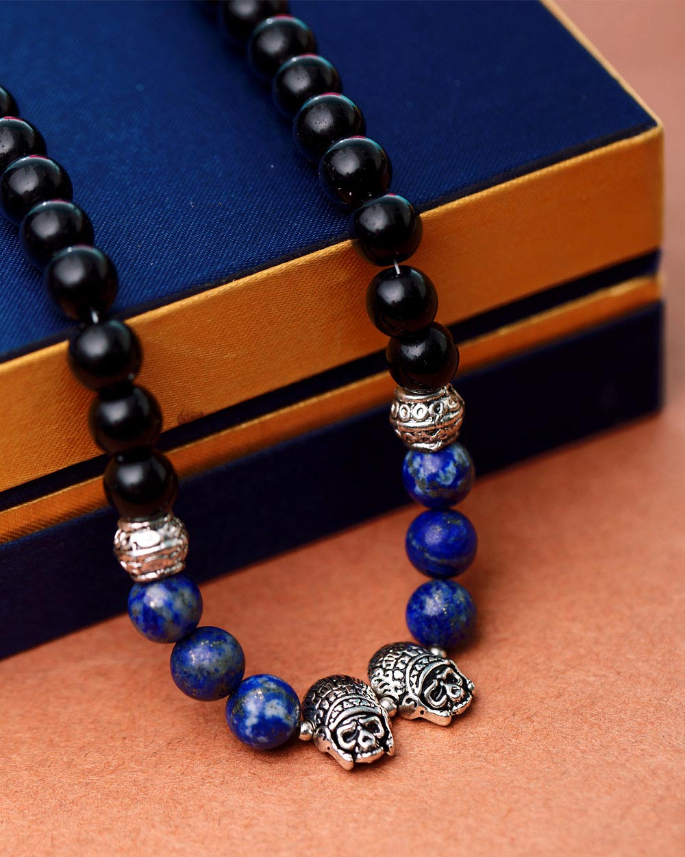 With skull motifs, this beaded chain has been fashioned out of brass. Wear the oxidised silver plated chain with a dark coloured t-shirt or collared shirt. To make your accessories last longer avoid harsh chemicals and moisture. Keep dry, clean with dry cloth and wear with panache. "India’s largest fashion jewelry brand DARE, comes from the House of Voylla as a limited edition of handcrafted accessories for the modern Indian men. "