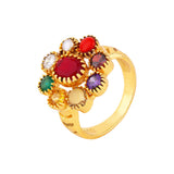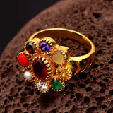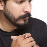 Men's ring made from brass and embellished with CZ gems. Yellow gold plated. Wear with formal attire.