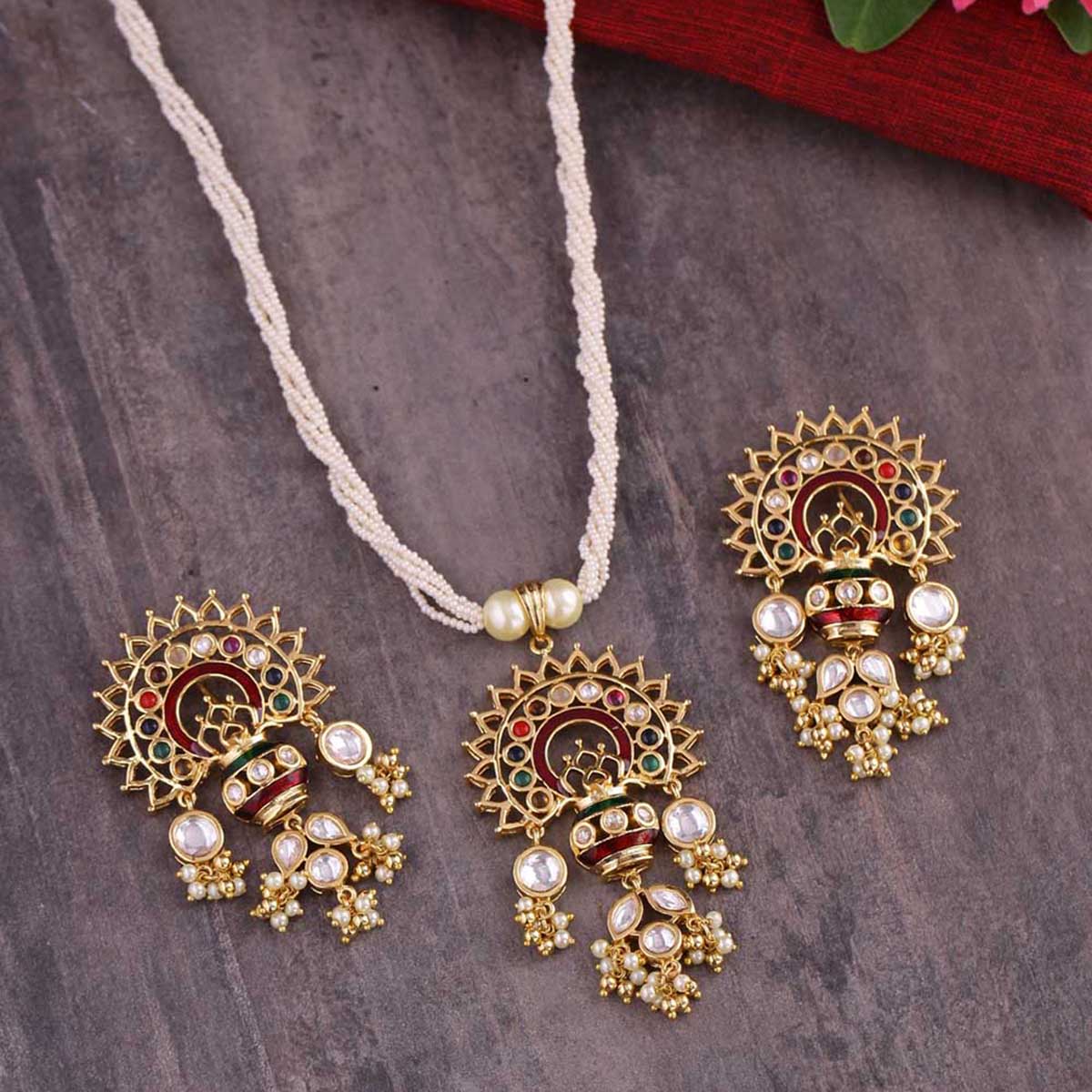 Navratan Ethnic Rangoli Pattern Necklace Set
