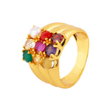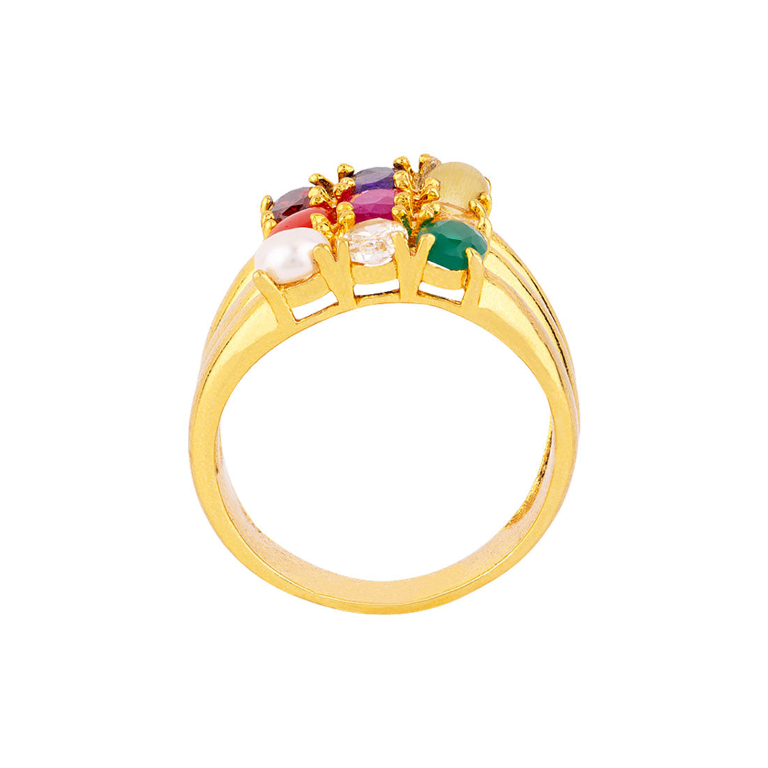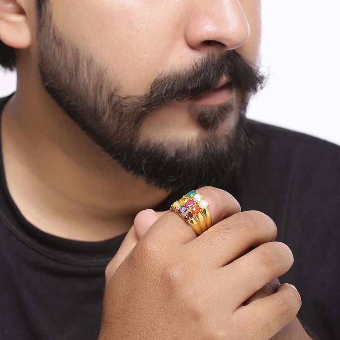Square CZ gems adorned ring for men. Made from brass and yellow gold plated. Pair with ethnic formal looks.