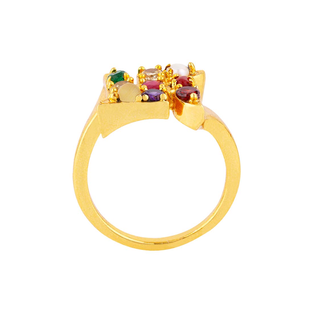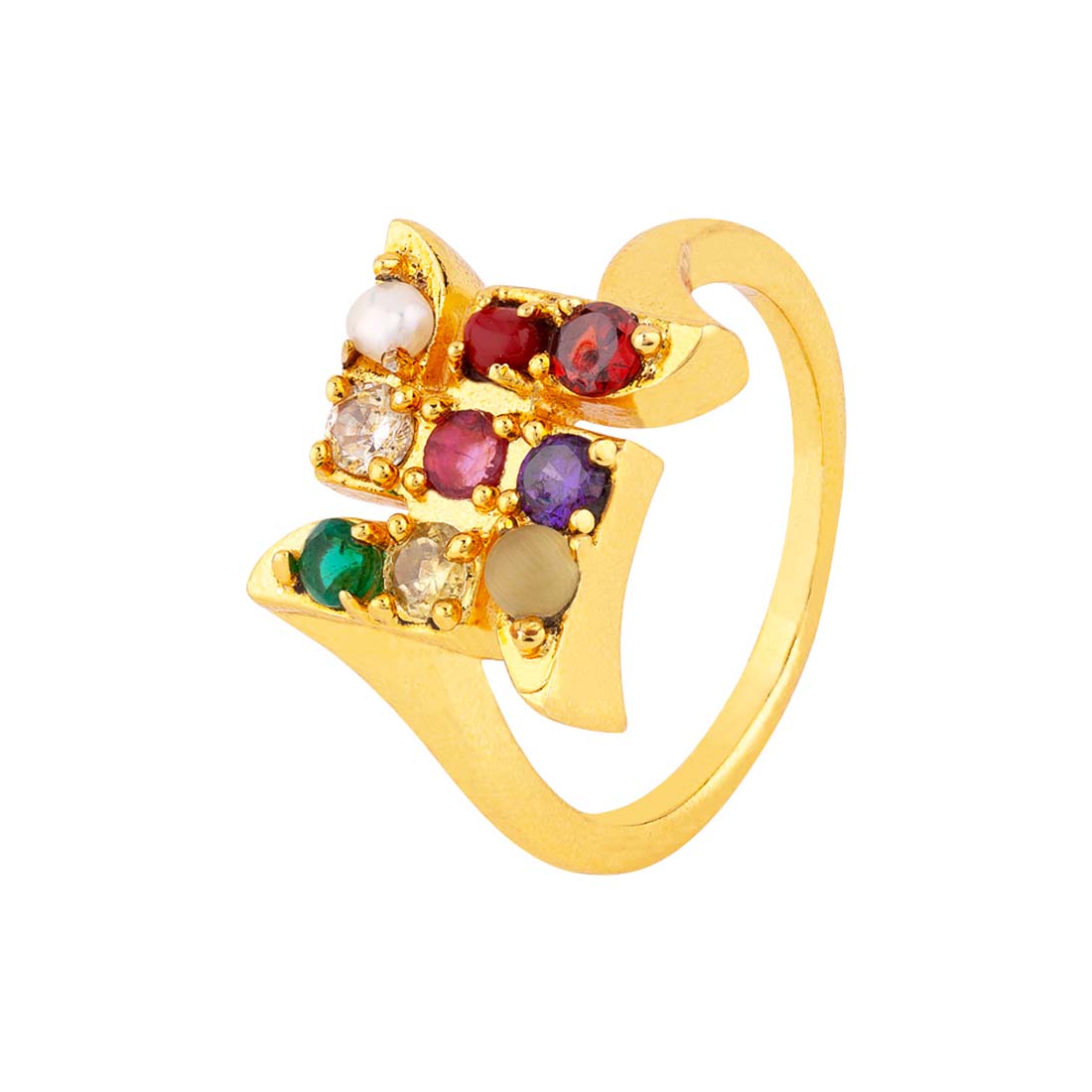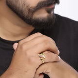 Swastik ring with CZ gems. Made from brass and yellow gold plated. Good for formal wear.