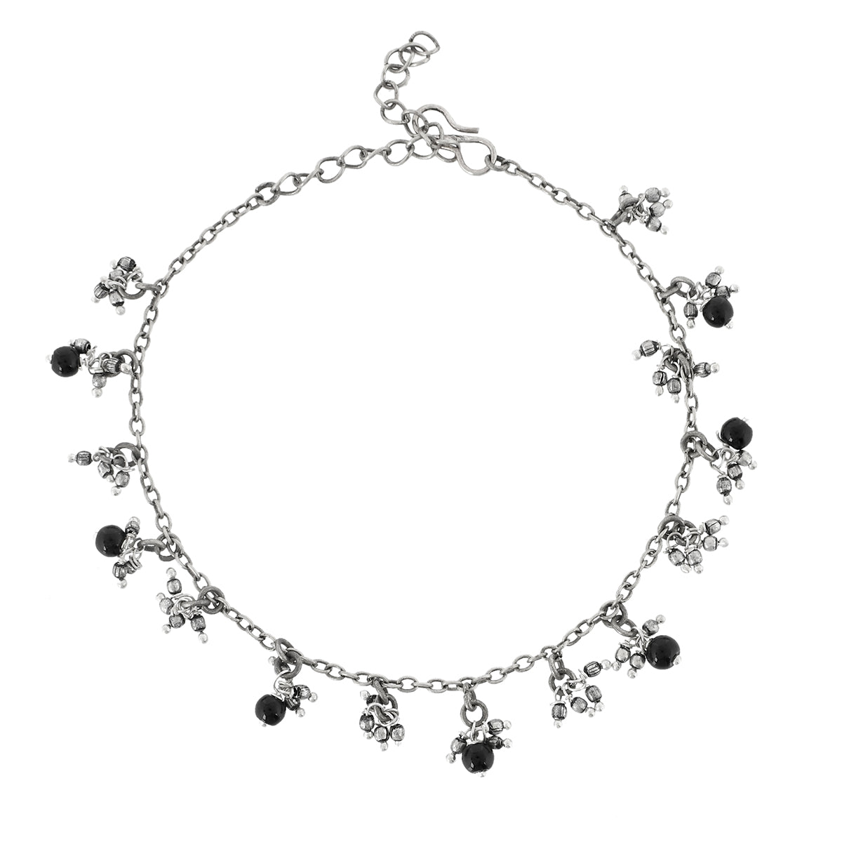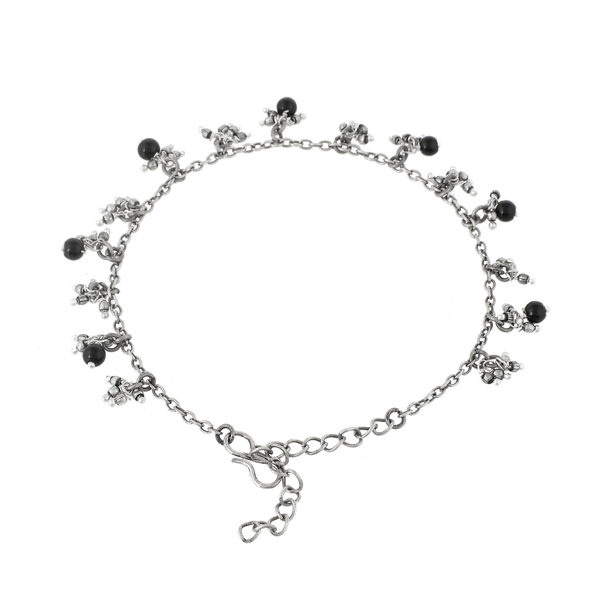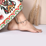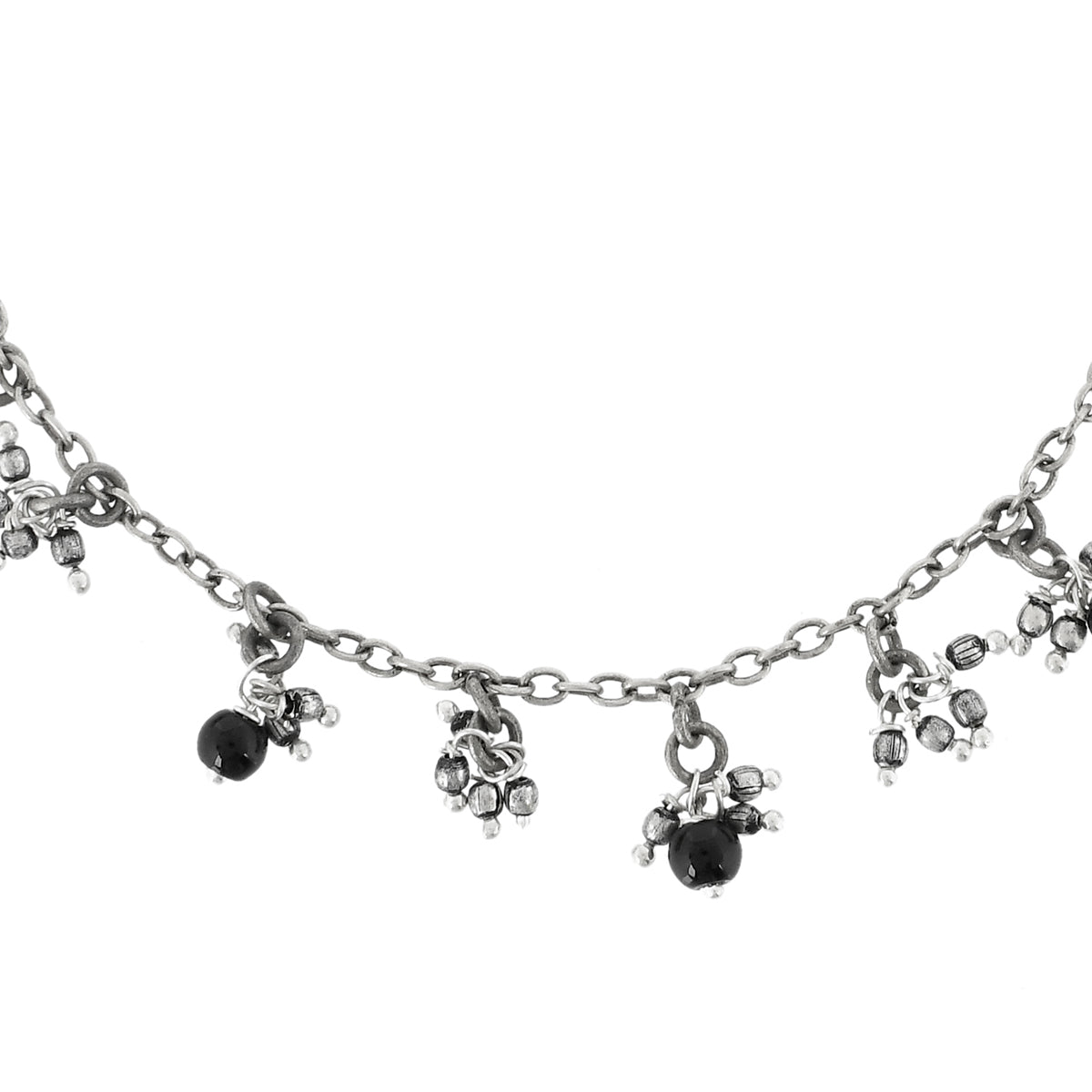 Inspired by the festival of Navratri and its many beautiful elements, this anklet has been crafted from brass and lightly embellished with metal ghungroos and black beads. The armlet has been given an oxidized silver plating and can be paired with ethnic and Indo-Western looks.