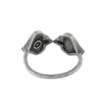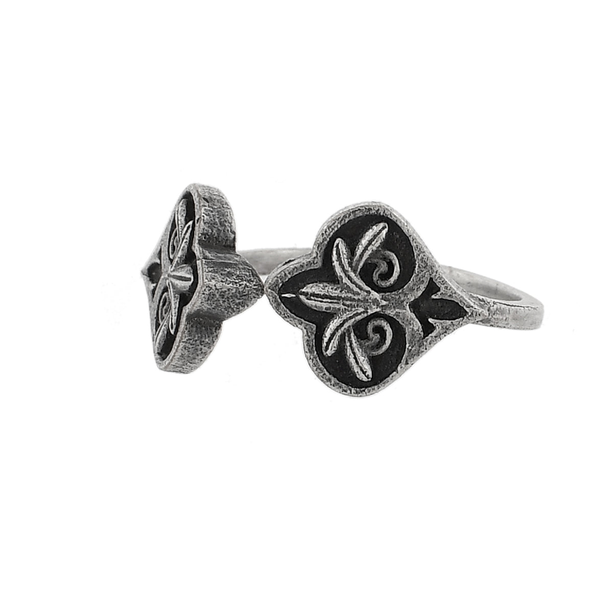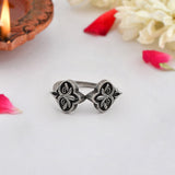 Floral motifs casual ring, designed as a tribute to the Indian festival of Navratri and its many elements. Made from brass and oxidized silver plated. A good match for outfits and looks of all kinds.