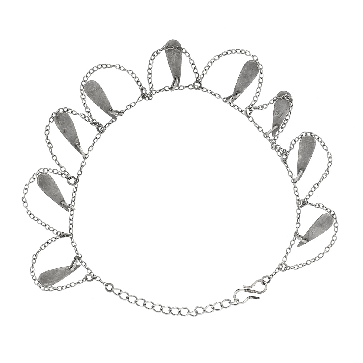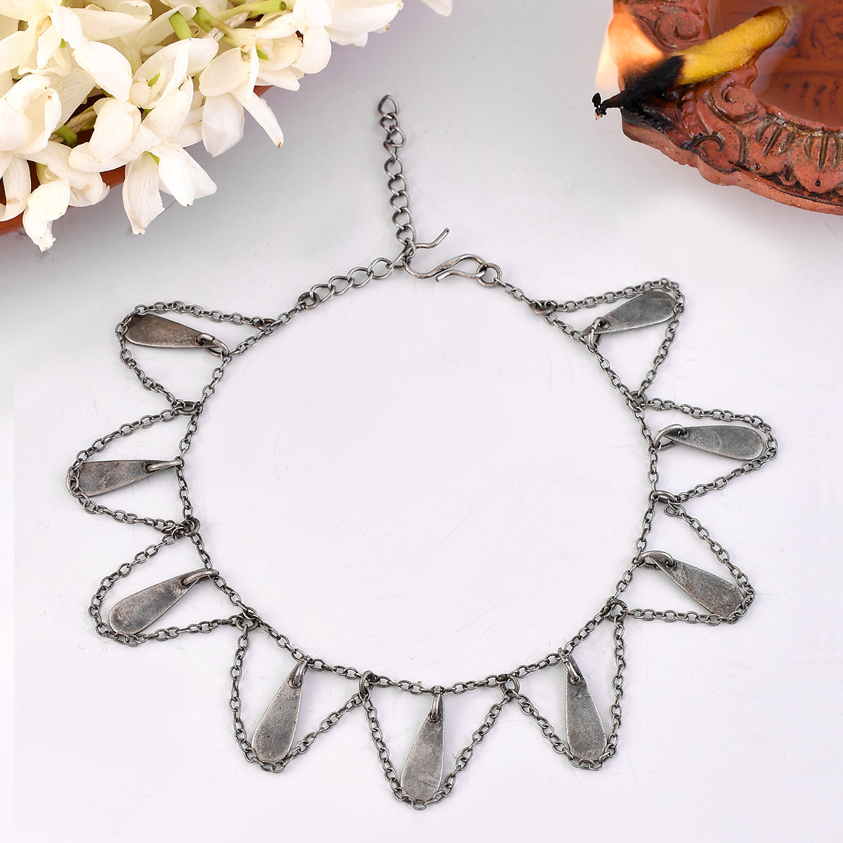 Beautiful banjara designs and elements of garba dance have inspired these traditional metal charms embellished anklets, which have been fashioned out of brass and silver oxidized plated. A good match for ethnic looks.