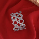 Floral motifs cuff style bracelet. Made from brass and oxidised silver plated. Wear with a trendy saree.