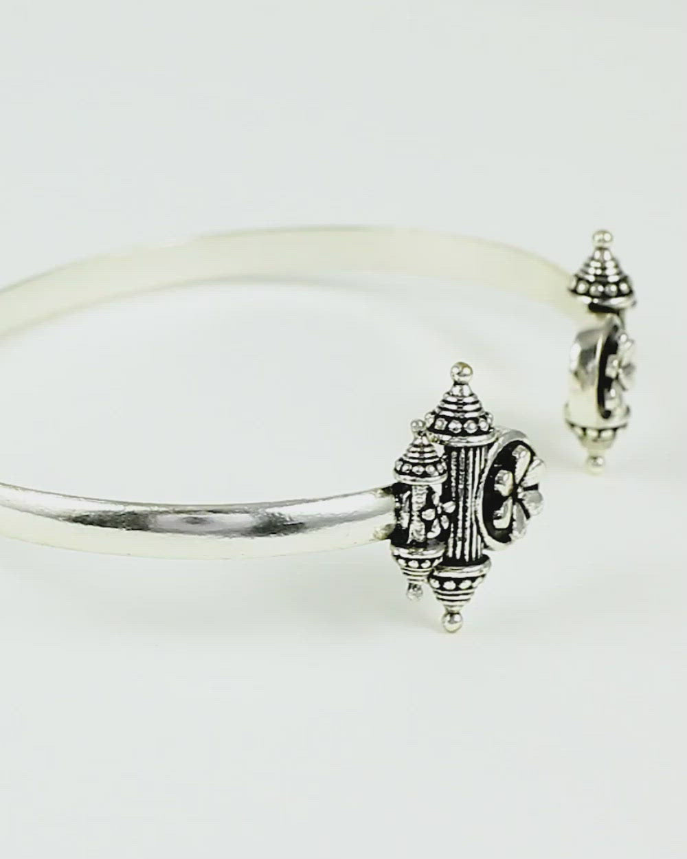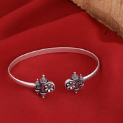 Vintage style open bracelet with floral motifs. Oxidised silver plated and fashioned out of brass. Pair with ethnic attire.