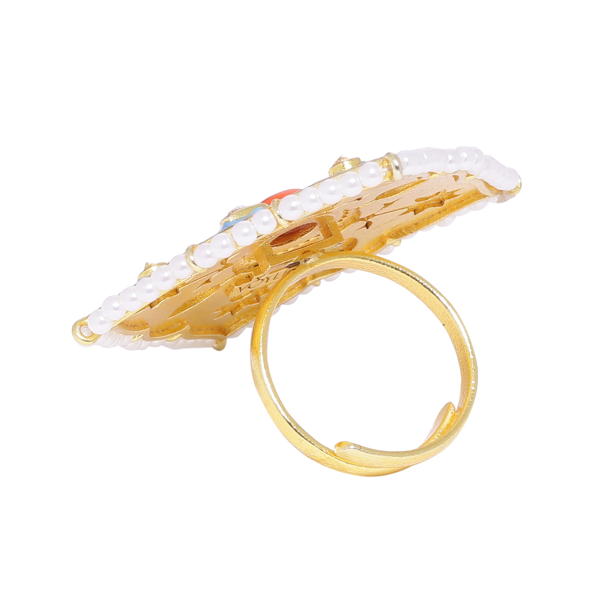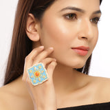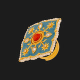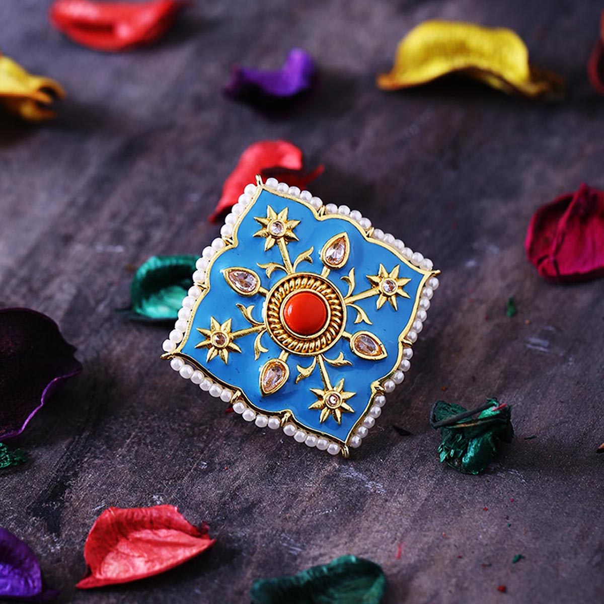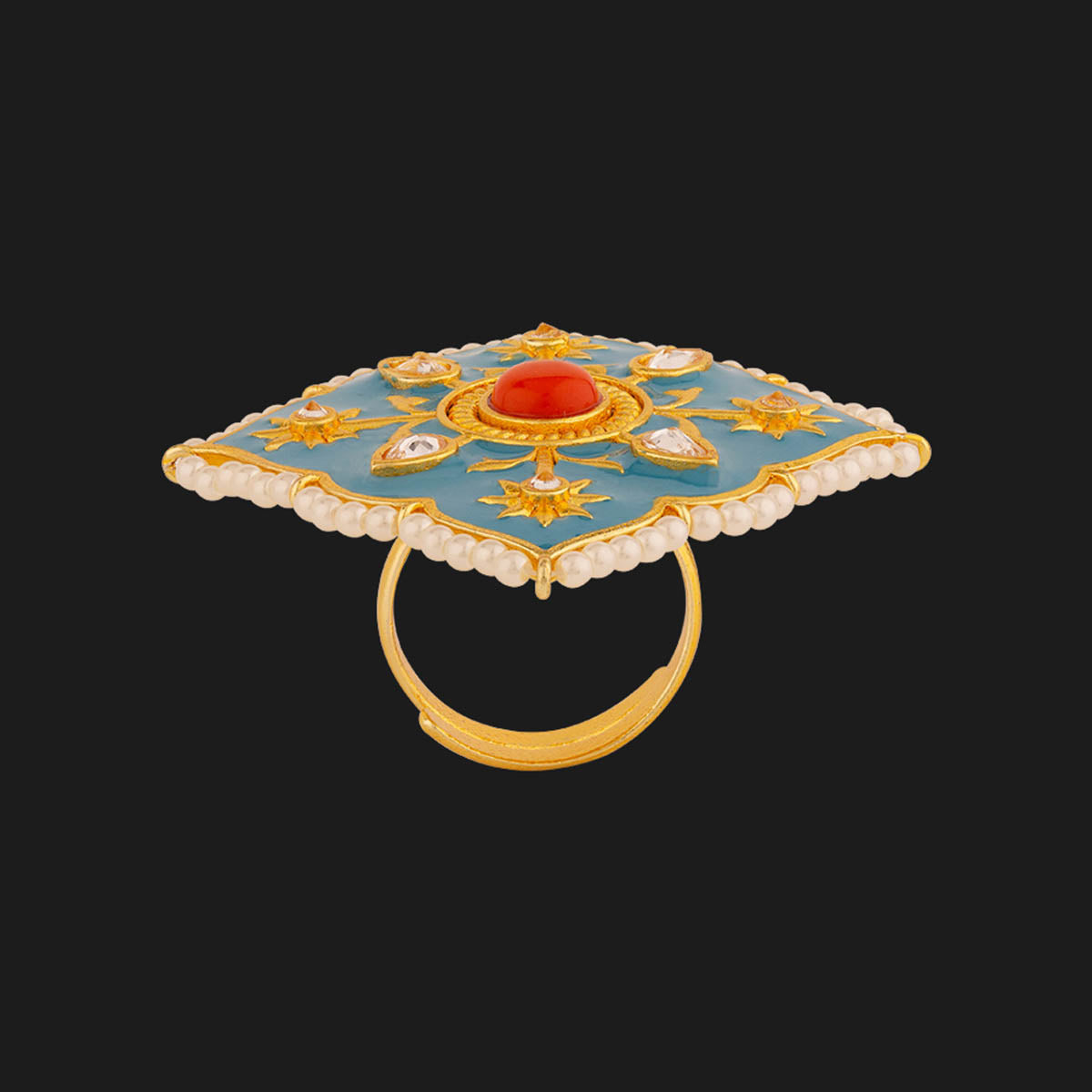 Gold specks embellished finger ring inspired by Jaipur's Blue Pottery. Made from brass and yellow gold plated. Good for formal wear.