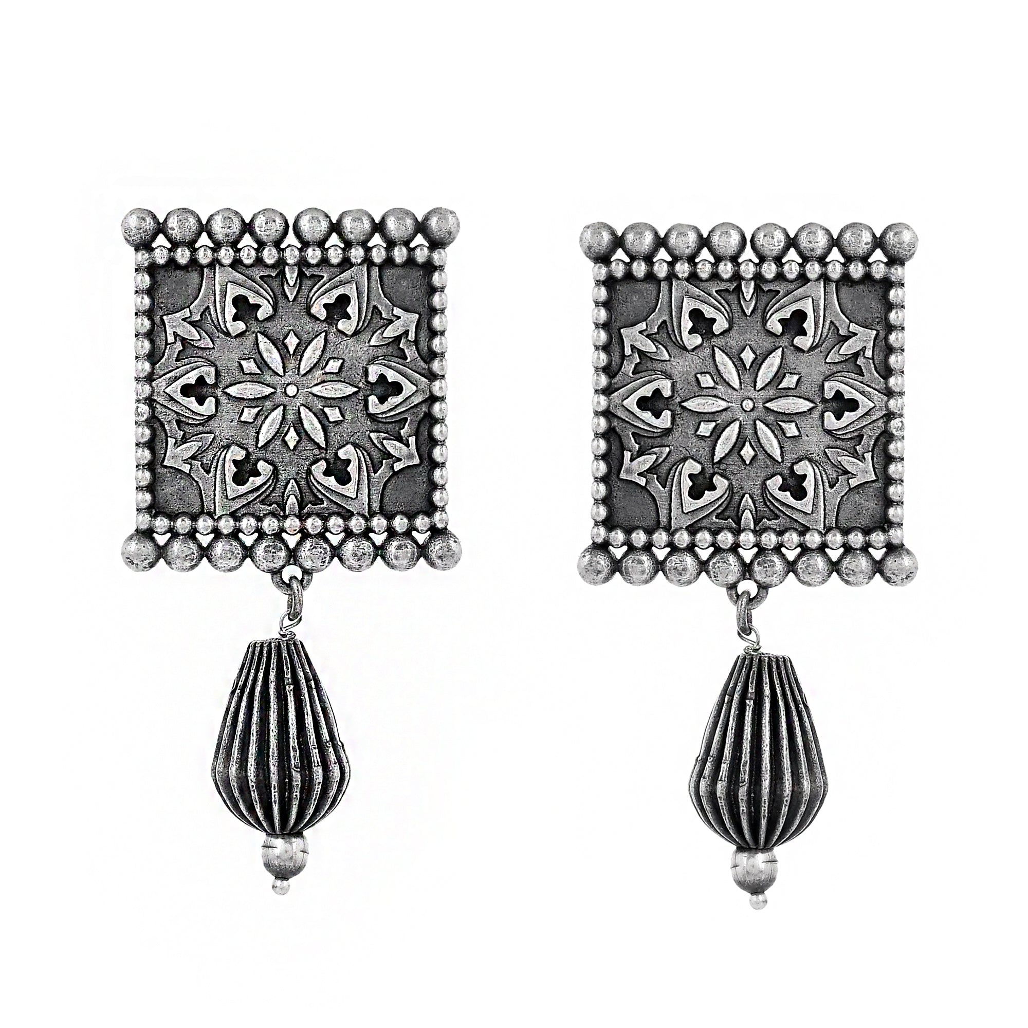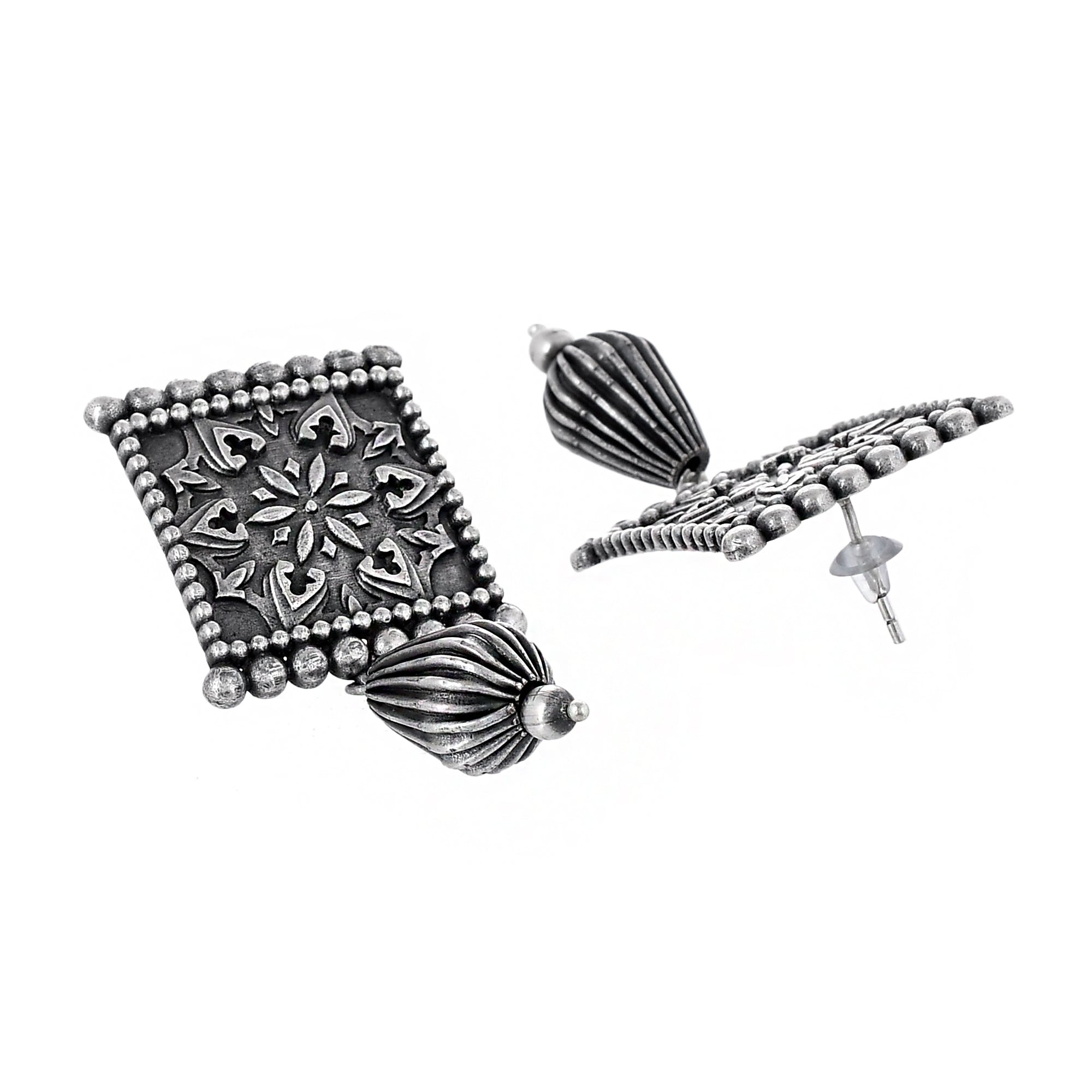 The essence of the Indian festival of Navratri and garba dance have inspired these traditional Sahara earrings. Made from brass and silver oxidized plated, the lightly embellished earrings can be paired with Indian and Indo-Western outfits.Caring for your fashion jewelry:...