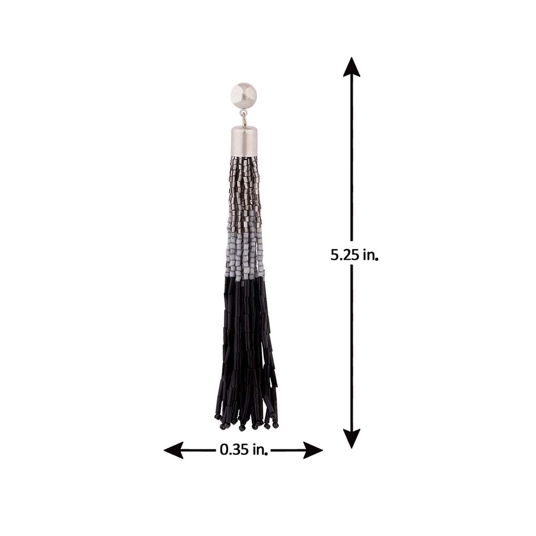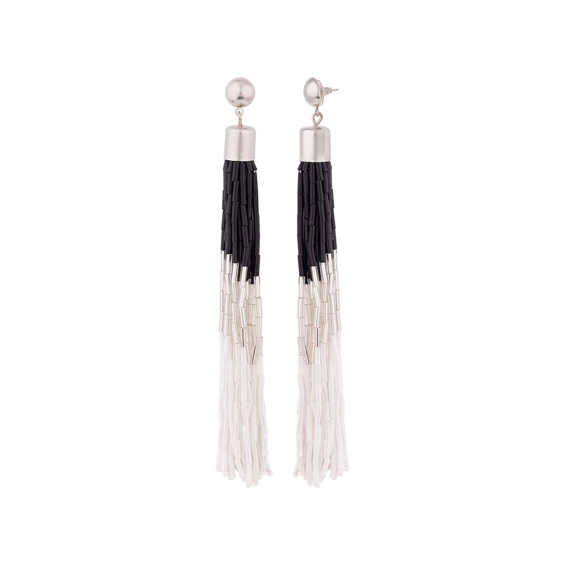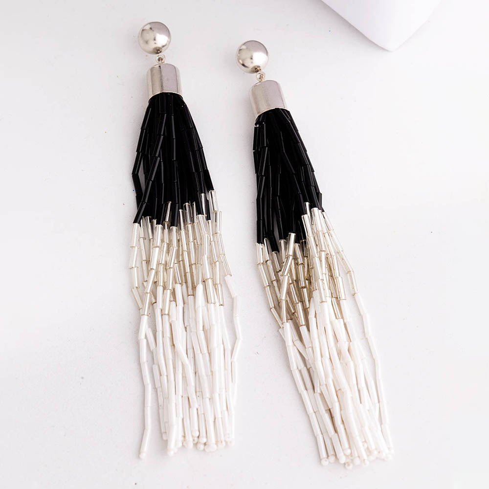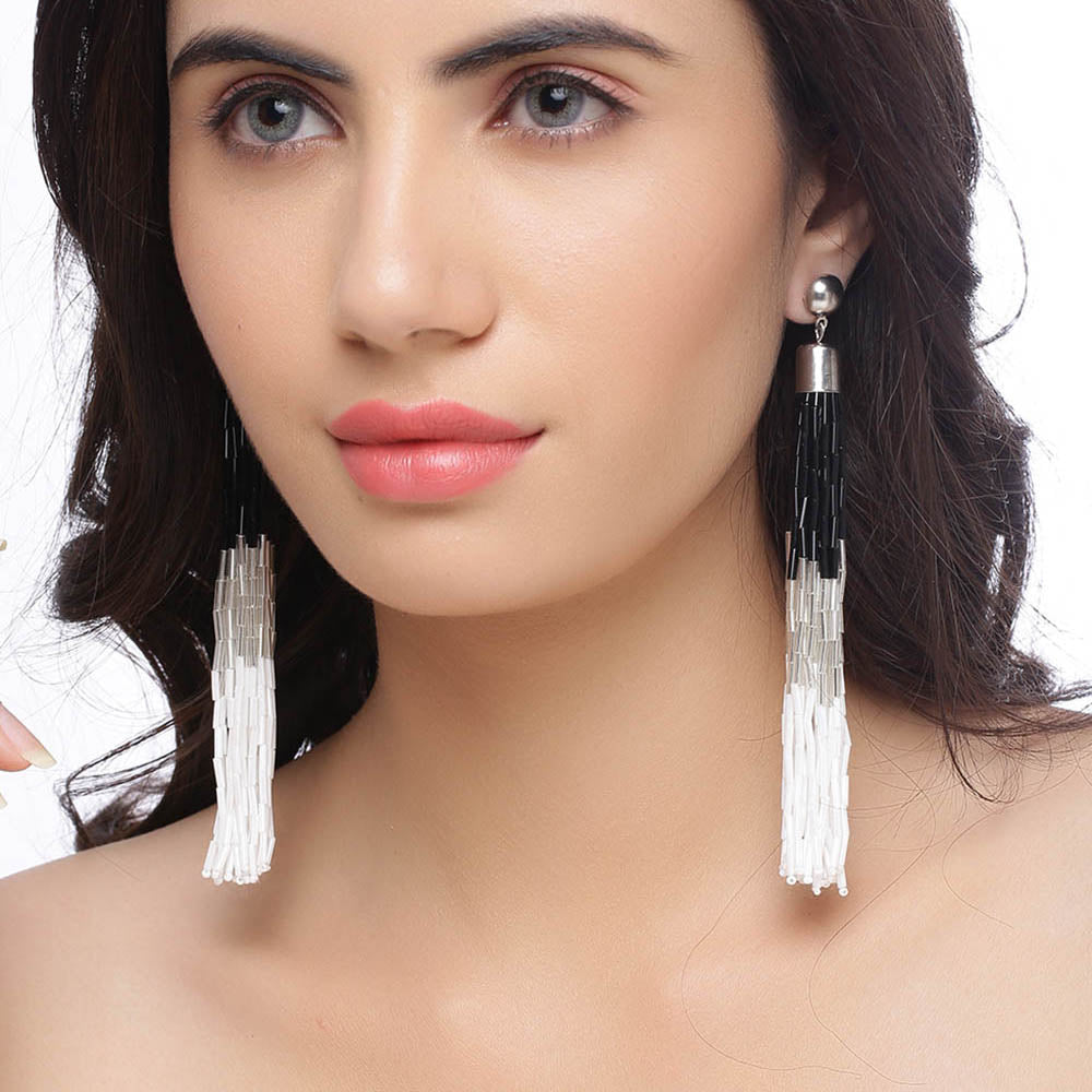 Black and white beaded tassels earrings. Yellow gold plated. Wear with a cocktail dress or trendy saree.